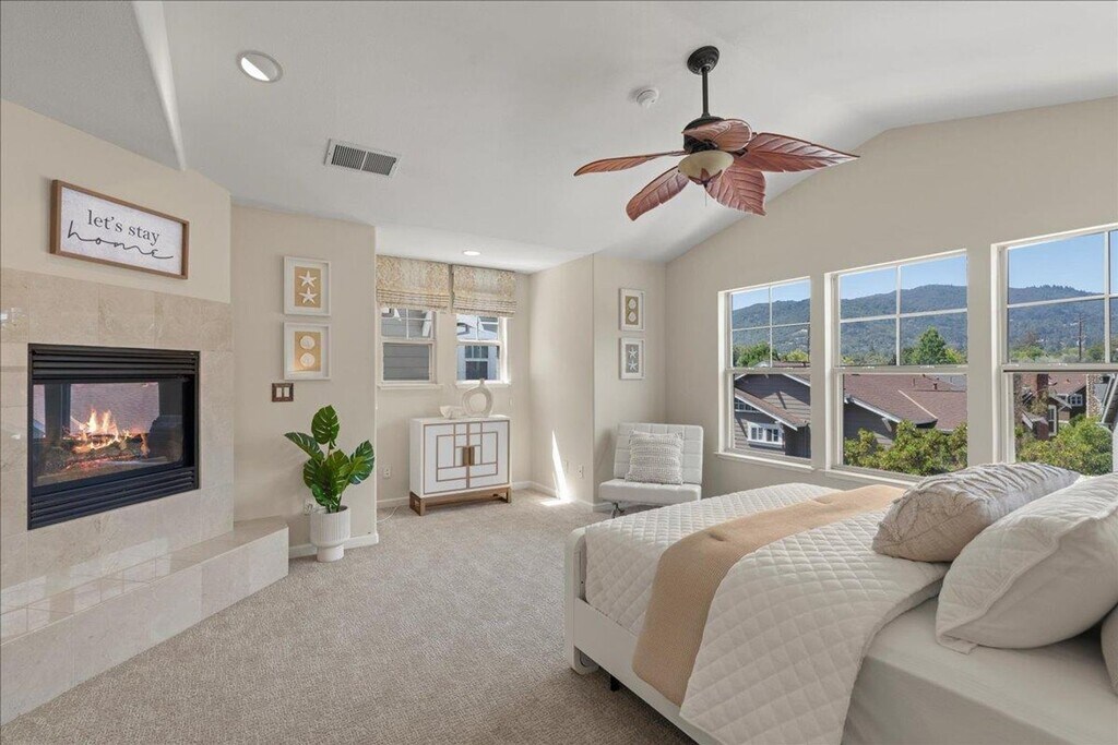 182 Cuesta De Los Gatos, Los Gatos, CA 95032 (Hwy 9/Los Gatos Blvd) Welcome to Bella Vista Village, a beautiful enclave of attached homes in the heart of Los Gatos. The home features 3 bedrooms, 2.5 bathroom and once inside, you'll discover a spacious and thoughtfully updated interior with 9-foot ceilings, central air conditioning, and hardwood floors. The kitchen includes granite counters, stainless steel appliances, and a convenient breakfast bar. The family room features a 2-way fireplace that is shared with the living room and adjacent dining room. French doors in the family room open onto a private deck backing to a landscaped hill. The master suite includes vaulted ceilings with stunning views of the mountains, a gas log fireplace, walk-in closet and marble bath. A two-car garage with new epoxy flooring & 2 dedicated storage areas provide added convenience. The home is ideally located in the community and a short distance of award-winning Los Gatos schools, downtown boutiques, fine dining and sidewalk cafes with easy access to the freeway. Enjoy easy access to the Los Gatos living with summer concerts at Music in the Park & Jazz On the Plaz, downtown parades, wine walks, Vasona Lake, Lexington Reservoir, & the scenic Los Gatos Creek Trail for hiking & biking. Cal DRE# 01998337