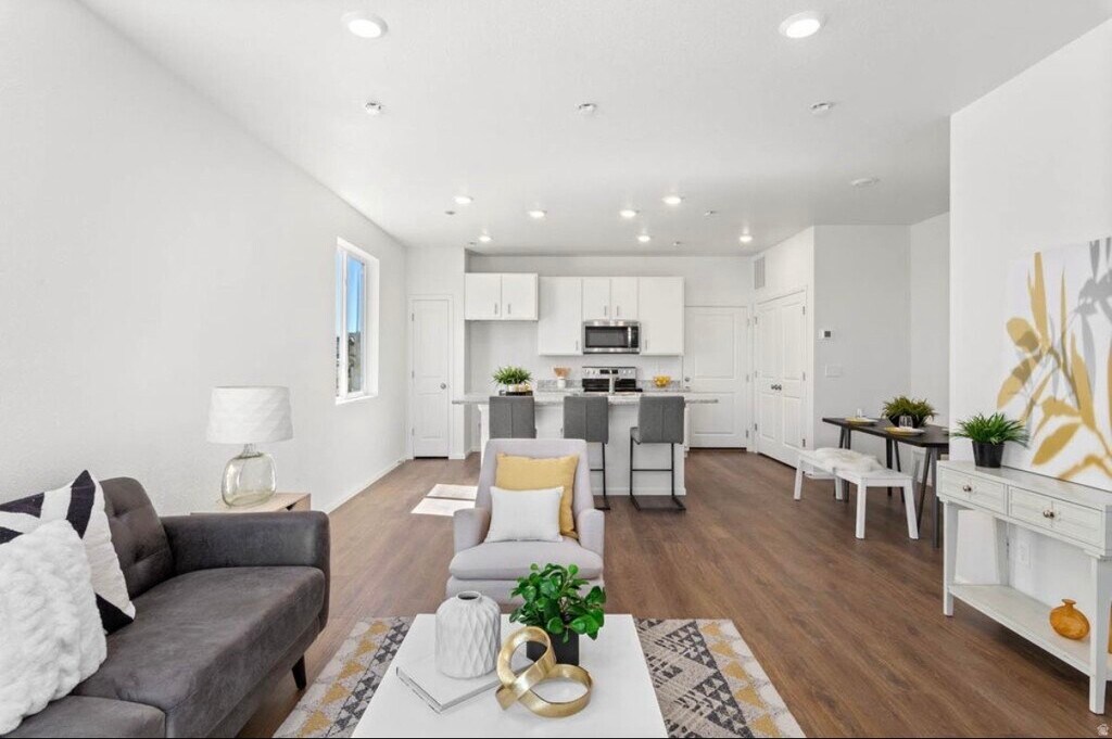 This brand-new corner-unit townhome offers 4 spacious bedrooms and 2.5 bathrooms, featuring an open-concept layout with hardwood floors and abundant natural light. The home includes a 2-car covered garage plus two additional non-covered parking spaces, along with new, modern appliances throughout. Located in the Wander community, this home is surrounded by natural open space along the Jordan River and The Springs Pond corridor, with scenic trails and view corridors throughout the neighborhood. Enjoy easy access to shopping, dining, schools, entertainment, and new city ball fields. Just 5 miles west of I-15, the location offers an easy commute with Thanksgiving Point less than 15 minutes away, all within the highly rated Alpine School District.