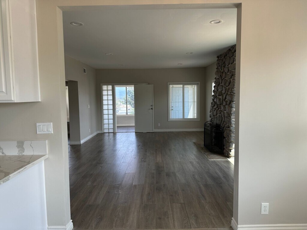 This beautiful home sits a top a hill with spectacular views. These views can be enjoyed from your beautiful sun room! It has 4bdrms and 2 1/2 baths. The master bedroom is conveniently located on the 1st floor with a newly remodeled attached private bathroom. The additional rooms are on the second floor and feature original built in vanities and stunning mountain views. The beautiful kitchen features quartz countertops, new appliances, built in microwave, a walk in pantry, built in spice rack, and a stunning LED-chandelier. New paint and flooring throughout. Enjoy the summer next to your remodeled pool. 2 covered parking spots. Yes pets are welcome woof woof (2) max. This home has it all, lots of natural light, tons of storage throughout. Large laundry room with washer/dryer hook up. Original gas stone fireplace. Owner pays for pool service and landscaping. Solar panels so little to no electricity bills! Don't wait! Apply today!