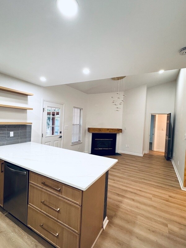Welcome to this beautifully renovated 3-bedroom, 2-bathroom single-family home in the heart of Durham. With 1,332 sq. ft. of living space, this home perfectly blends modern design, comfort, and functionality, ideal for anyone seeking a move-in-ready home. Step inside to an open-concept layout featuring vaulted ceilings and abundant natural light. The fully updated kitchen is a chef's dream, complete with stainless steel appliances, energy-efficient fixtures, custom cabinetry, an oversized island, and sleek quartz countertops. The seamless connection between the kitchen, dining, and living areas enhances the open feel of the home. The primary bedroom offers a peaceful retreat with a private en-suite bathroom featuring a double vanity, walk-in shower, and premium tile finishes. Two additional bedrooms provide generous space for guests, family, or a home office. Enjoy the outdoors in your fenced backyard surrounded by trees, or relax in the glass-enclosed sunroom with stunning wood ceilings and skylights, a perfect spot for reading or morning coffee. The home also features a front porch and an attached one-car garage. Located minutes from Downtown Durham, Duke University, and major highways, this home combines convenience, modern comfort, and timeless style. Don't miss your chance to make this stunning home yours, schedule your tour today!