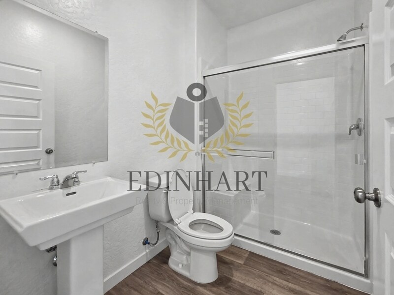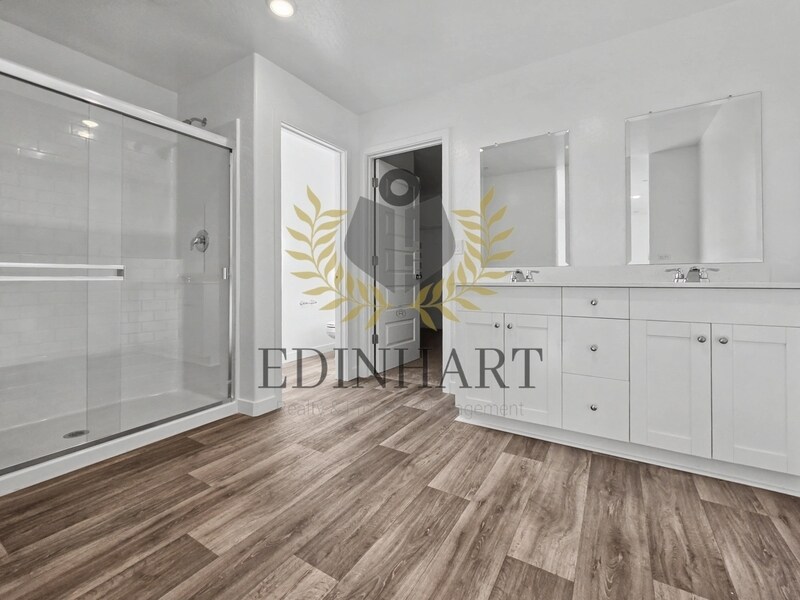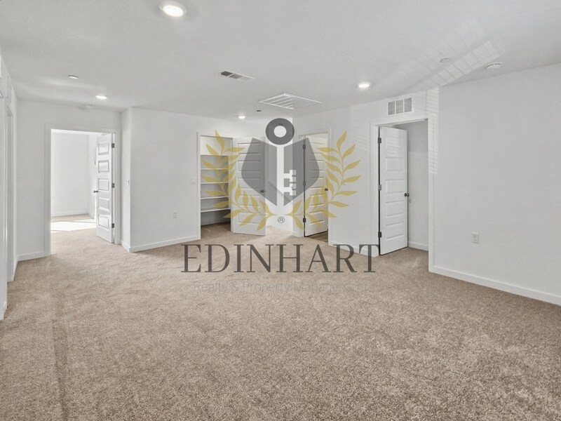 This brand new four bedroom, three bathroom home offers 2,065 square feet of modern living space with a clean, well laid out floor plan and included solar to support energy efficiency. The home feels open and bright with a comfortable separation between spaces, allowing each area to function well on its own while still feeling connected. The main level features durable flooring throughout and includes the kitchen, living areas, a full bathroom, and a bedroom located downstairs. The kitchen is finished with sleek cabinetry, expansive countertops, stainless steel appliances, and a large center island. A generous pantry provides convenient storage, and the layout keeps the kitchen functional and uncluttered. The main living areas connect easily to the private backyard, which includes new fencing and a patio area ready for outdoor use. Upstairs, the remaining bedrooms are finished with soft carpeting and ample closet space, along with a spacious loft area that works well as an additional living space or flex area. An additional full bathroom is also located upstairs, along with a dedicated indoor laundry area with washer and dryer provided. The primary suite is generously sized and designed to feel like a true retreat, with plenty of room to unwind and settle in comfortably. The bathroom is beautifully finished with a spacious dual sink vanity, modern fixtures, and a large walk in shower, while the oversized walk in closet offers exceptional storage and breathing room rarely found in rentals. A security deposit is required. Renters insurance is required. Landscaping and utilities are the tenant's responsibility. No pets permitted.