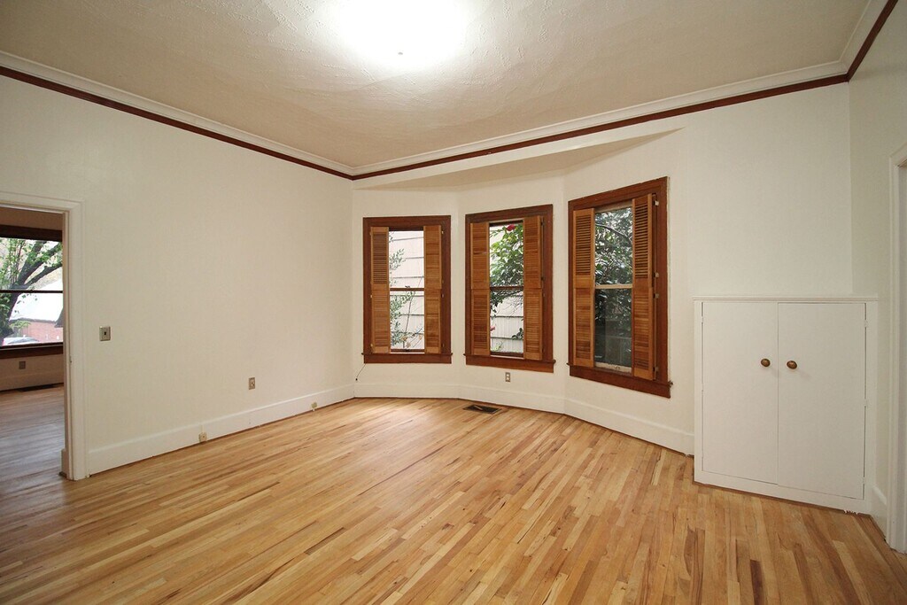 This spacious main floor apartment was built in 1902 and is loaded with period charm with a flexible floor plan. Features Include: • Gorgeous original wood floors • High ceilings • Loads of windows flood the space with natural light • Living Room features a bay window and small built-in hutch • Huge Bedroom area with more bay windows, a built-in cabinet and large walk-in closet • The period kitchen is huge, with original Marmoleum flooring, lots of counter space, newer appliances, gas range and another built-in hutch. • The bathroom features another built-in and a newer shower and original wall-mounted sink. • Fabulous location in the heart of Portland’s Goose Hollow neighborhood, less than a block from the Multnomah Athletic Club, Providence Park, restaurants, coffee shops, bars and loads of mass transit options, with the MAX being just down the block. •Shared washer and dryer in basement, along with storage space *$100 monthly surcharge for water/sewer -- Renter's Insurance Required -- * Pet negotiable with an additional deposit ** Note: This unit is not ADA compliant Open application period: Now!