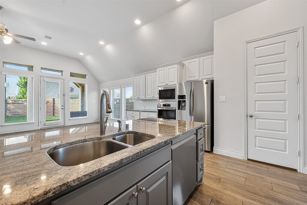 Beautiful corner-lot home with striking brick and stone elevation and a grand 13-foot ceiling entry. Features include a formal dining room,a versatile game room with French doors,and a spacious family room with a cast stone fireplace and wall of windows,seamlessly opening to the kitchen and breakfast area. The kitchen offers an island with seating and a walk-in pantry. The private primary suite boasts a luxurious bath with a garden tub,separate glass-enclosed shower,dual vanities,linen closet,and a large walk-in closet. Enjoy outdoor living on the extended covered patio and the convenience of a two-car garage. Upgrades include two modern bathrooms with standing showers,refrigerator,new laundry machines,new dishwasher,EV charger in the garage,Ring video doorbell,smart main door lock (fingerprint/code/WiFi/key),fully tiled flooring (except bedrooms),blinds throughout,and a NEST smart WiFi thermostat. MLS# 77895868