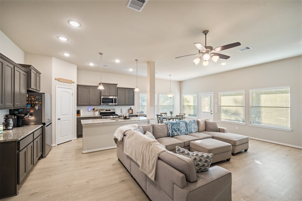 Kathy StensonWelcome to Willis' newest acreage community! This gorgeous modern farmhouse is situated on nearly an acre. The open-concept floor plan features a spacious kitchen with upgraded cabinetry, granite countertops, designer backsplash, stainless steel appliances, pendant lighting, a large walk-in pantry, and a island open to the family room. The oversized laundry room provides plenty of space for a freezer, folding table, or additional storage. Primary suite includes a spa-like bath with a walk-in shower with seat, double vanities, and ample storage. Secondary bedrooms are extra-large, and the second full bath includes double sinks. Durable laminate wood plank flooring runs throughout the main living areas, with carpet in the bedrooms. Outside, enjoy a covered patio and a spacious lot ideal for building a shop or storing your RV, boat, or trailer. Additional features include a structured wiring panel, USB and media outlets, front gutters, and a full yard sprinkler system.