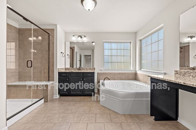 Stunning home in the Palisades of South Charlotte! This 5-bed, 3-bath home has much to offer. A formal dining room as you walk in, with an open floor plan in the back with the kitchen, breakfast, and living room. The living room features a gas log fireplace and windows overlooking the large back patio and screened porch. The kitchen boasts granite counters, a gas cooktop, a pantry, an island, and a breakfast bar. There is a bedroom on the main level in the back and a full bath with a step-in shower, no tub. The primary bedroom is on the upper floor with three secondary bedrooms, a loft area, and the laundry room. The primary has 2 large WIC's and an ensuite bath with a garden tub, separate shower, and dual vanities, one with a makeup area. The three secondary bedrooms share a hall bath with a double sink vanity and a shower/tub combo. The loft area outside the primary bedroom is large with built-in shelves and carpet. There is a large bonus room on the third floor tucked away by itself that would be a perfect office space, kids get away, or gaming room. Pets conditional. **No CATS** Amenities: Walking Trails, Club House, Fitness Center, Tennis Courts, Golf Course, Recreation Area, Pond, Outdoor Pool