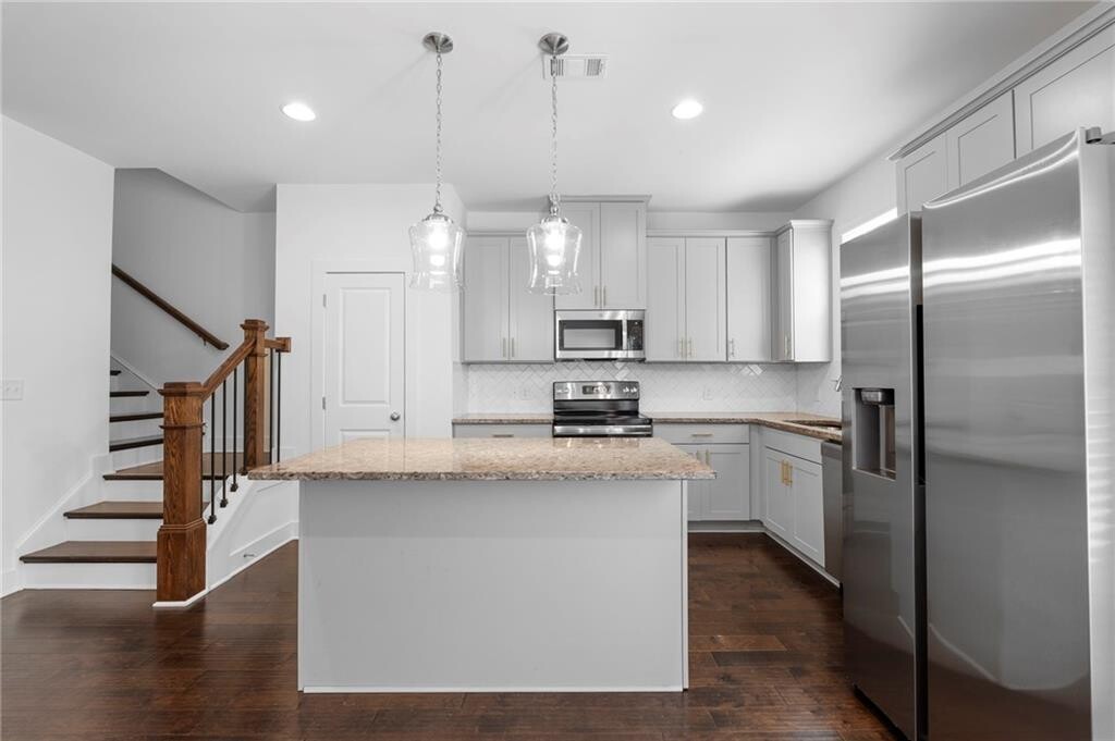 This beautifully designed townhome offers an abundance of natural light throughout its open concept floor plan. The home features 3 bedrooms,2.5 bathrooms,a 1-car garage,and a driveway accommodating up to 2 cars. The interior boasts elegant stone countertops,a gorgeous designer backsplash,stunning dark cabinets with silver accents,and stainless steel appliances. Enjoy the convenience of an included washer and dryer on the top level. The master bedroom is a luxurious retreat - HARDWOOD FLOORS in bedroom. The master bath comes with a separate tub and shower,double vanity,and a spacious walk-in closet. The additional bedrooms are generously sized. This home is all hardwood flooring,adding to its charm and easy maintenance. The fully fenced yard is perfect for entertaining,and lawn care is maintained by the HOA. Located in a beautiful new community in Stonecrest,you’ll be near shopping,grocery stores,Stone Mountain,and I-20. Plus,the home is right across the street from Redan Recreation Center. Don’t miss out on this stunning rental opportunity!