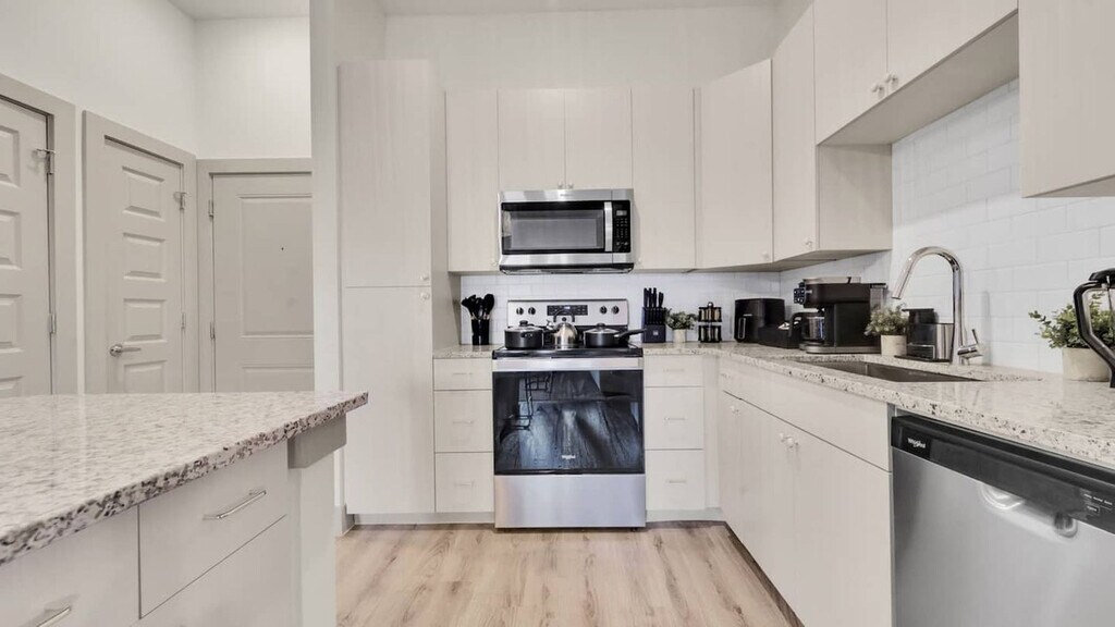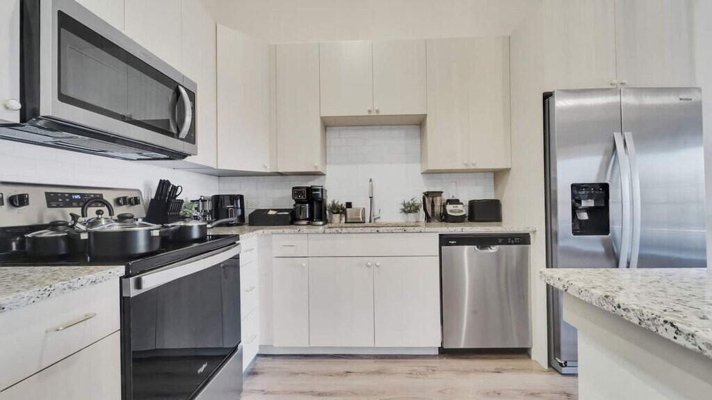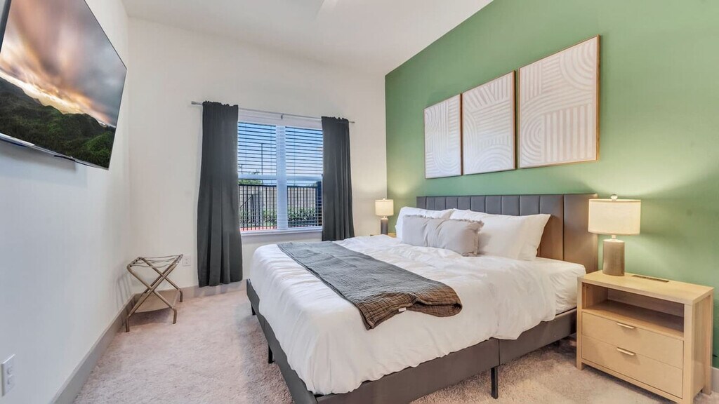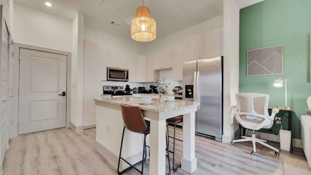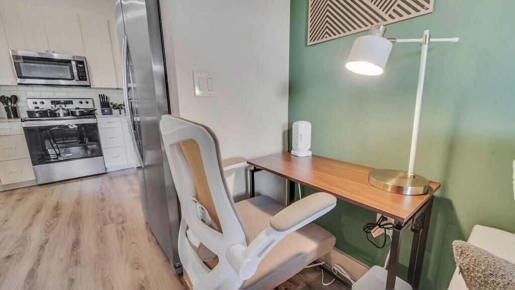 Feel at home in this cozy studio apartment, ready to host your adventures in west Houston. It's a short drive to Katy, TX, and the Houston Energy Corridor. This carefully crafted apartment is designed to accommodate solo travelers, couples, and small families. It features a modern king-size bed with plenty of pillows, central AC and heat, and a fully equipped kitchen with a blender, Keurig coffee maker, and toaster. Centrally located in the vibrant 77084 neighborhood, this studio offers a peaceful retreat close to everything you need. The area blends suburban charm and urban convenience, featuring diverse dining, shopping, and lush green parks. It's close to major attractions and essential services, as well as being within walking distance of Texas Children's West Campus and Houston Methodist West Campus. Only one fob will be provided. I cannot be held responsible for any failure in shared amenities, and there will be no refunds due to failures in shared amenities. Please pay careful attention to the check-in info provided. Includes a workstation for business travelers and conference visitors. [SI]