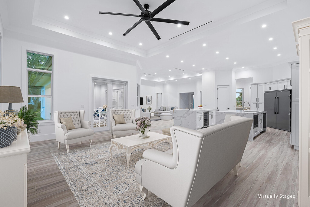 This newly built, one-story CBS home offers an exceptional living experience right on the Old Trail golf course. The open floor plan boasts high ceilings and impact windows and doors, blending style with security. The chef-inspired kitchen is a true standout, featuring double islands and stunning waterfall quartz countertops--perfect for entertaining. The thoughtful split floor plan provides privacy, with a spacious primary suite that includes two walk-in closets and a luxurious free-standing tub. Additional features include 3 bedrooms, an office, a formal dining room, and a cabana bath. Enjoy the peace of mind provided by a 24-hour secured gate, a low HOA fee, and optional membership opportunities. Rent with an option to purchase is available as well.