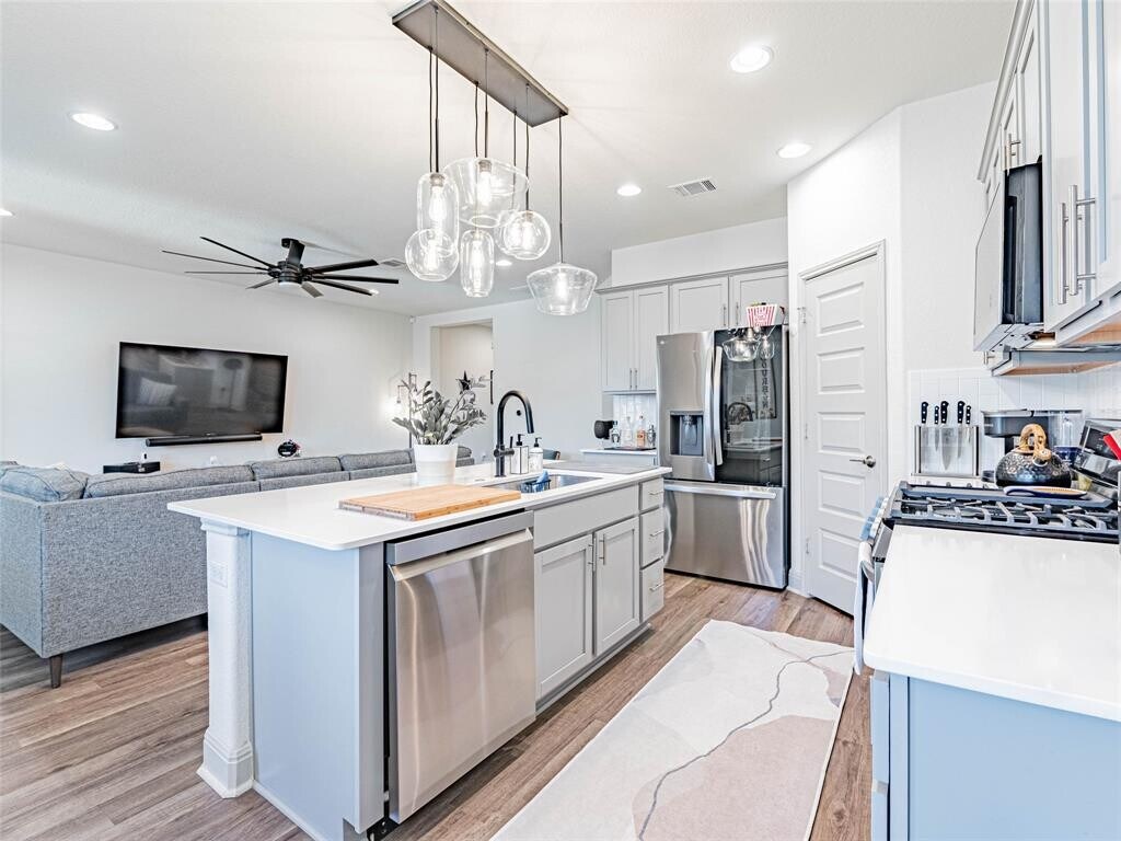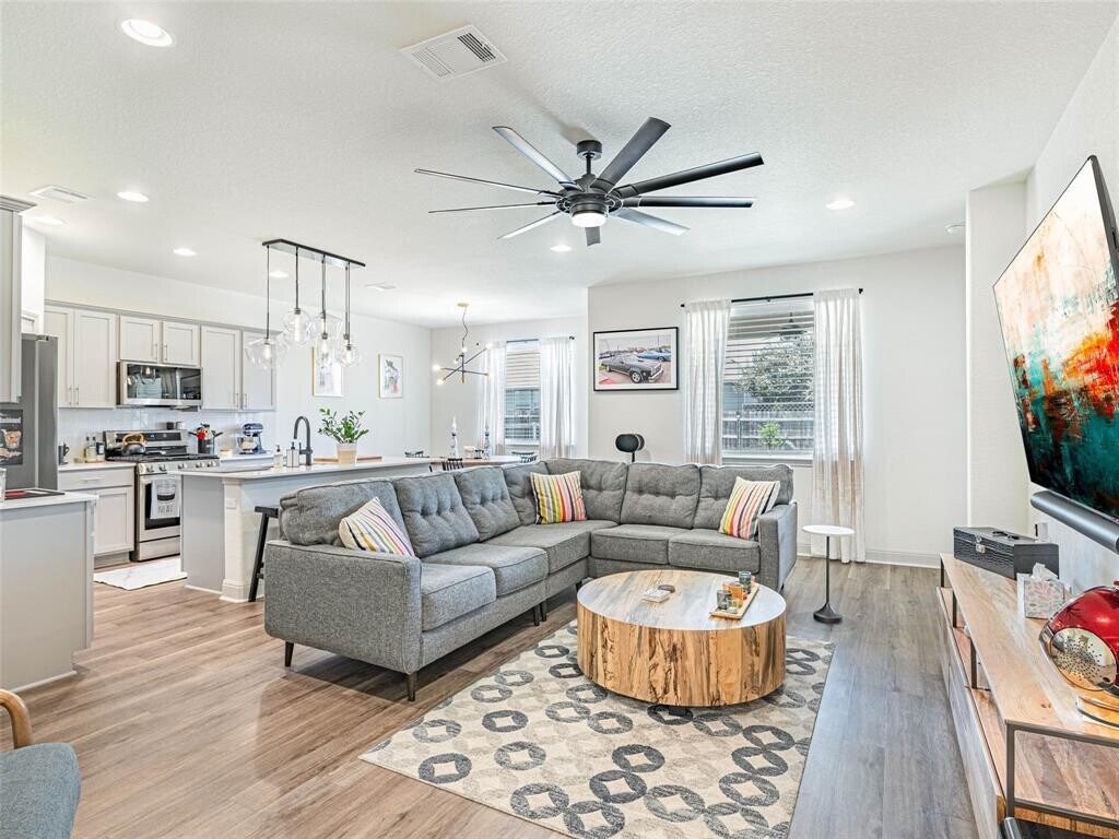 Note- Home not furnished- Washer, Dryer, Fridge ready for tenants. Discover this exquisite home in the exclusive gated Sorento community, showcasing custom lighting, an updated roof and gutters (2022), state-of-the-art appliances (2023), a Nexus Water Softener system (2023), elegant wood shutters, and professionally designed landscaping. Meticulously maintained and upgraded, this residence surpasses new construction standards. Soaring ceilings, an open-concept layout, and a spacious backyard with a covered patio and fire pit create an ideal setting for unforgettable gatherings. Steps away from premier amenities, including a gym, pool, splash pad, dog park, and playground, this home offers unmatched convenience. Located directly across from Lake Pflugerville park, enjoy scenic trails for running or biking and easy access to kayak rentals. With quick access to Hwy 130, Stone Hill Town Center, and major employers like Tesla, Dell, Kalahari Resort, and Amazon (its distribution center just 10 minutes away for same-day deliveries), this home is perfectly positioned. Schedule a showing to experience the ultimate Pflugerville lifestyle!