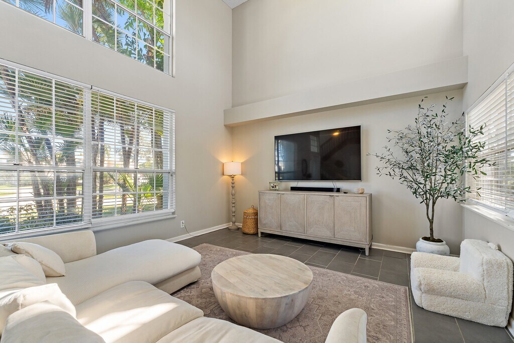 Welcome to this 3-bedroom, 2.1-bathrooms single-family home with a 2-car garage nestled inside the gated community of North Passage. All three bedrooms are located upstairs, including a spacious primary suite with a large closet and access to an open upstairs deck. Offered unfurnished, the home also features a covered porch and a private backyard with mature landscaping, shade, and golf course views. North Passage offers exceptional amenities including a pool, fitness center, playground, clubhouse, tennis and pickleball courts, paddleboard launch, and 24-hour manned security — everything you need for comfortable Florida living.
