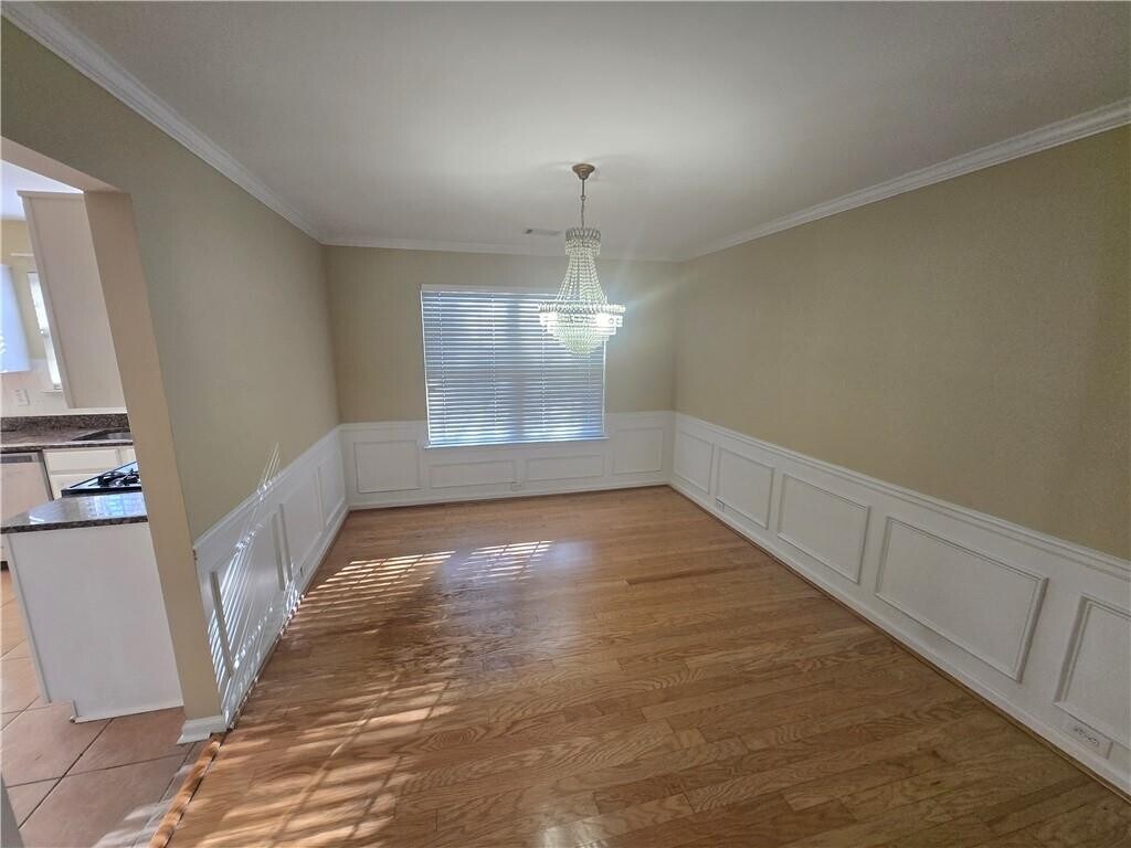 !!!!Beautiful brick-front home in desirable East Cobb location!!!!. 2 Story entrance foyer. Venture through the foyer passing the living room and dining room to the inviting kitchen with granite countertops,white cabinets,and the stainless steel appliances. View to the Family Room. Beautiful Laminate flooring throughout the house. Huge family room with vaulted ceiling and a gas fire place.. Upstairs has a spacious owner's suite includes Tray ceiling and double vanity and a soaking tub in the bathroom. Nice private flat backyard!!!!