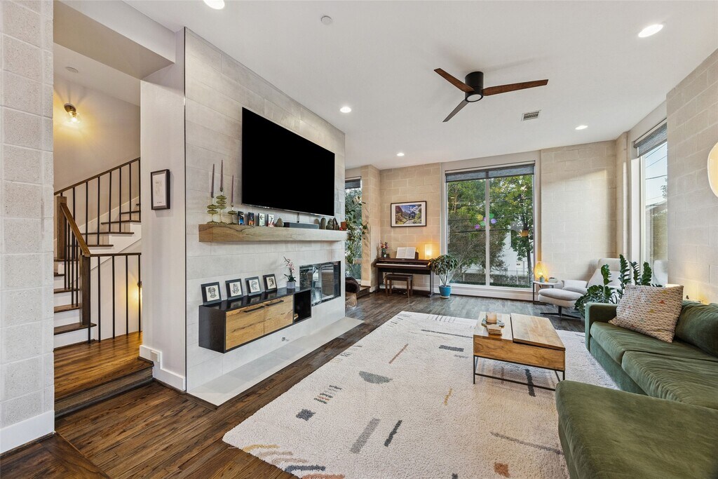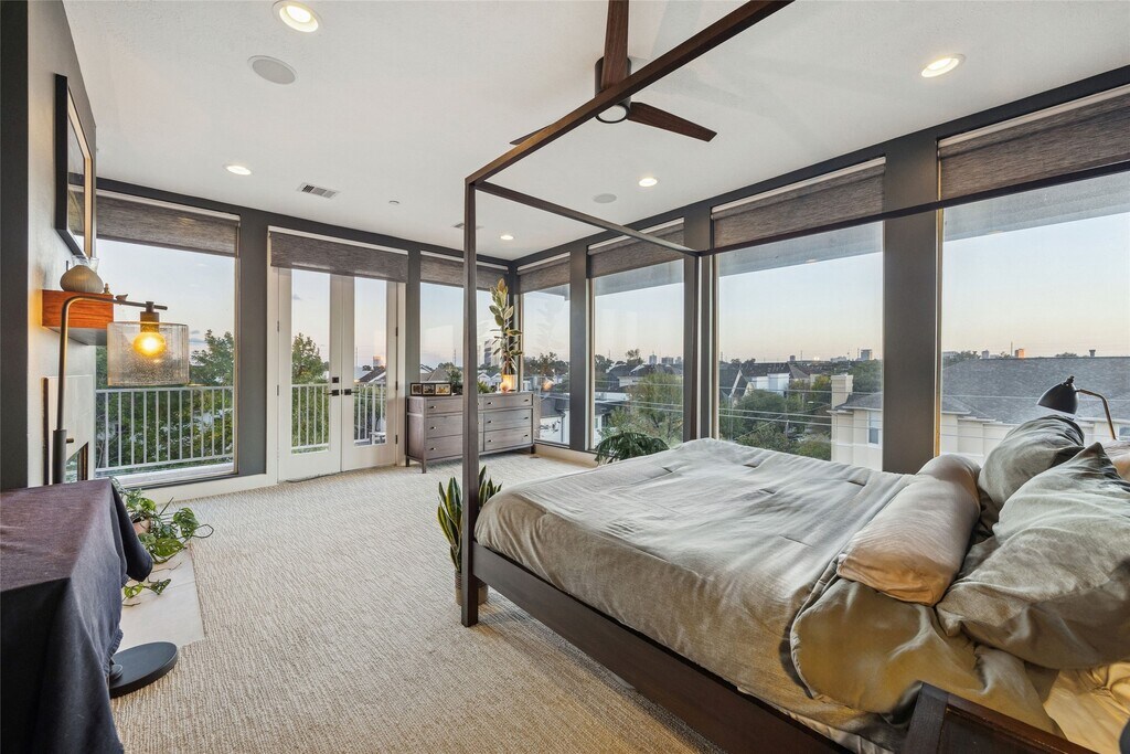 This unique home is a true work of art with stunning city views,an elevator,and a private yard in this highly walkable Houston neighborhood. As one of the tallest buildings in the area,you won't find views like this in new construction with views of the medical center,downtown,and midtown. Flocked with special features like patios on upper floors,a primary and living room fireplaces,spa like primary retreat,modern updates,and a contemporary design. Floor-to-ceiling windows flood the space with natural light,perfect for any home gardener. your plants and you will thrive in the abundance of natural light. The study is equipped with bookshelves and dark walnut cabinetry,ideal for working or playing from home. A must-see for urban dwellers seeking charm and luxury living. MLS# 14651560