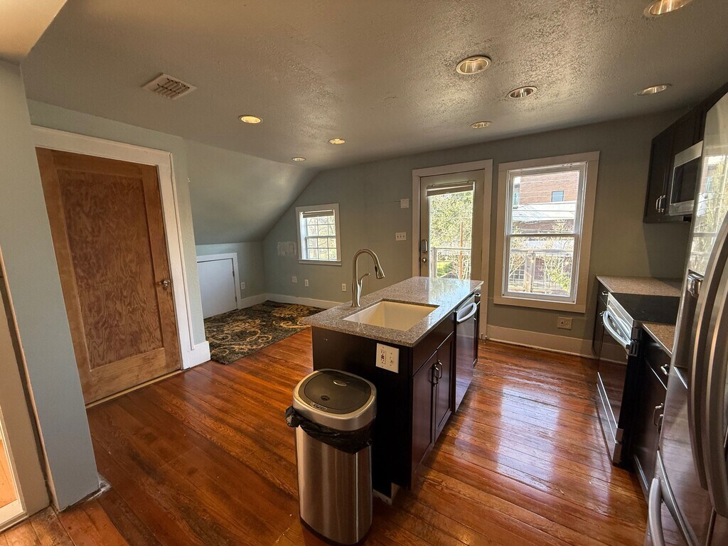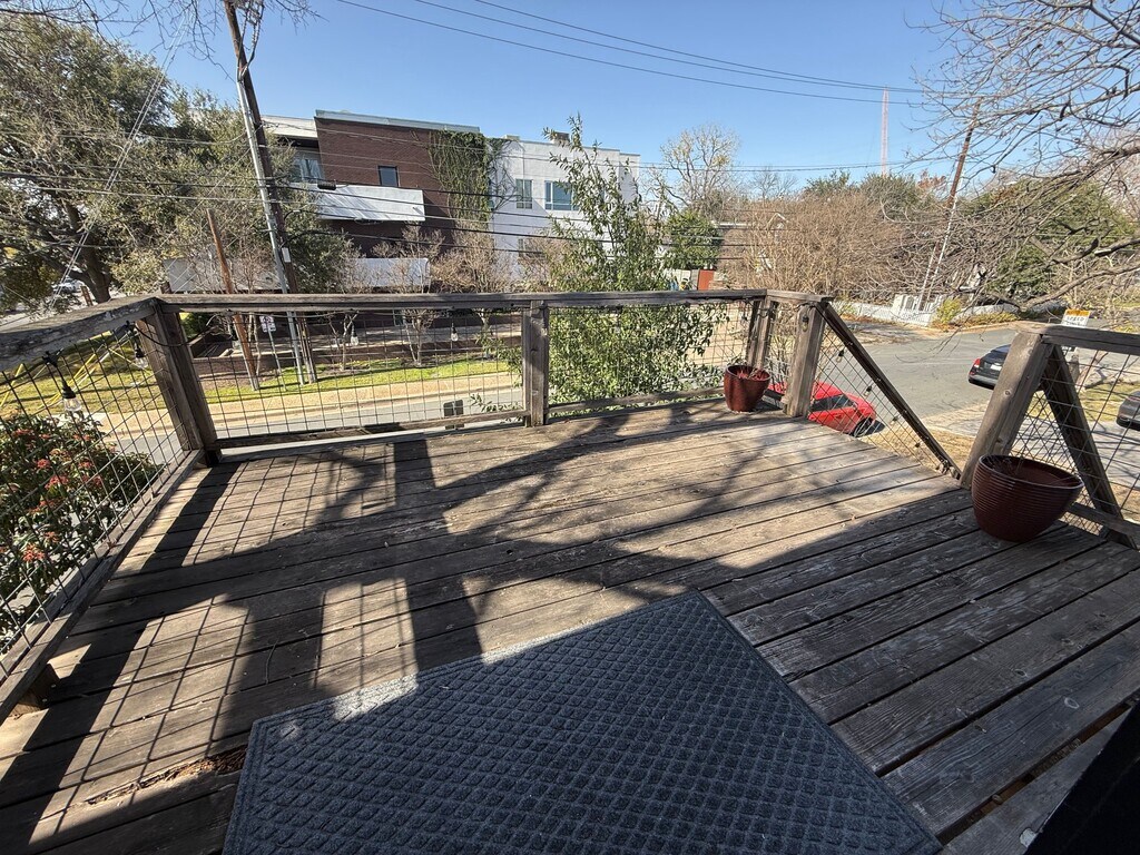 This unique and character-filled unit is located in the highly desirable Brykerwood neighborhood, just one block from Loop 1 on 35th Street, offering quick access to downtown and central Austin amenities .The home was remodeled last year and blends original charm with modern updates. Original hardwood floors run throughout the unit, and abundant natural light fills the space, creating a bright and welcoming atmosphere. The newly updated kitchen features granite countertops, a deep sink, dishwasher, refrigerator, and washer and dryer—all included. The cozy living room offers ample space for comfortable seating and flows into a small open office area, perfect for working from home while staying connected to the main living space. Both bedrooms are generously sized and offer plenty of closet space. Just off the kitchen, a spacious deck provides the perfect spot to relax or entertain. Two private off-street parking spaces are located at the rear of the property, eliminating any parking concerns. A rare opportunity to enjoy charm, natural light, modern updates, and an unbeatable central location. pets welcome but must be approved. Applicants should have an income of at least 3x the rent. Please note this apartment is on the second floor above the hair salon.