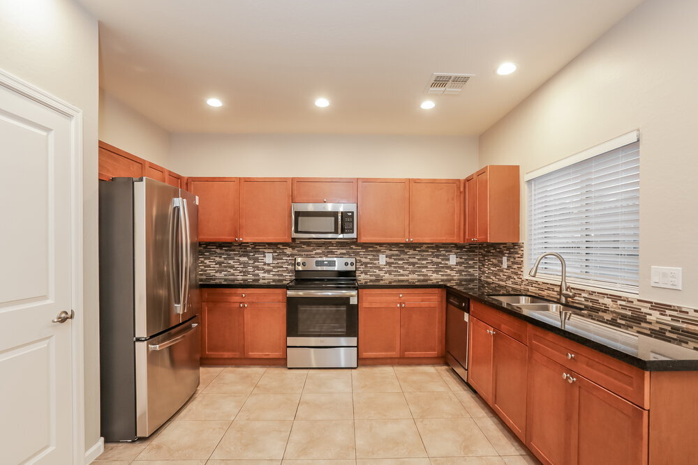 Please note, our homes are available on a first-come, first-serve basis and are not reserved until the holding fee agreement is signed and the holding fee is paid by the primary applicant. This home features Progress Smart Home - Progress Residential's smart home app, which allows you to control the home securely from any of your devices. Learn more at This home is priced to rent and won't be around for long. Apply now, while we make this home ready for you, or call to arrange a meeting with your local Progress Residential leasing specialist today. Featuring nearly 1,800 square feet of living space, this Phoenix rental home is a true desert oasis. The living room of this two-story home offers cool tile flooring and a ceiling fan. Step into the eat-in kitchen, and you will find a pantry, stainless steel appliances, granite countertops, and a stylish tile backsplash. The master suite is a true haven, offering vinyl plank flooring, a ceiling fan, a walk-in closet, and a bathroom complete with dual vanity sinks. Relax in the fenced-in backyard with its covered patio, or head to the community swimming pool to soak up some rays. Today is a great day to call us to set up your tour of this recently renovated and move-in ready home.