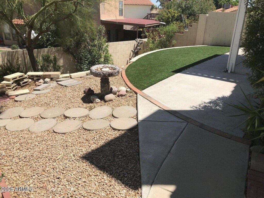 This is a HILLSIDE lot in an upscale East-side neighborhood with a view deck to see FOUR PEAKS + closer mountains + city views. A patch of artificial grass in the back for easy maintenance + a private fenced front courtyard great for BBQs and get togethers! GRANITE counters in kitchen and all 3 bathrooms,updated cabinets,PLANTATION SHUTTERS,Separate living room with formal dining,& family room is open to the kitchen. 3 full bedrooms up top with the primary opening to the view deck. If you need a sen or office on top of the 3 bedrooms some have used the formal living area for an office. Close to the 101 for ez access to Desert ridge and Scottsdale to the East or Norterra shopping area to the west!