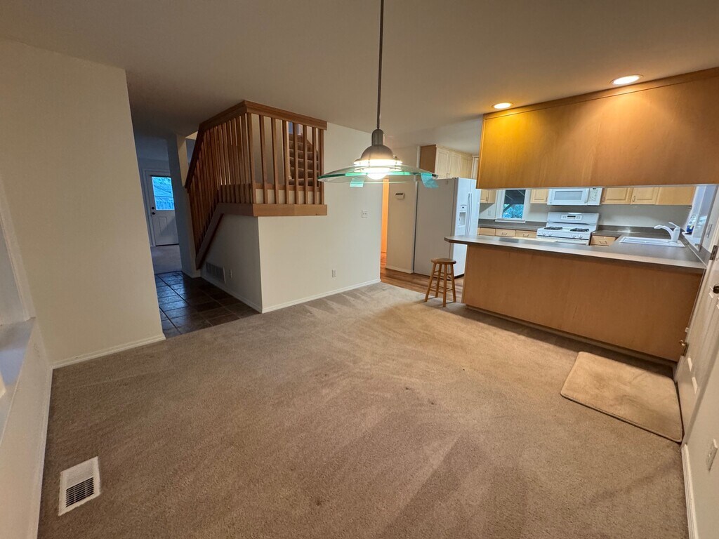 Super nice and CLEAN 3 bedroom, 2.5 bath home close to town! This is a two level home, lower level accessible by ramp if needed. On the main level you will find a large carpeted living room with gas fireplace, separate dining area just off the kitchen and wonderful fully equipped kitchen with plenty of space to spread out. Gas range included! Also on the main level you will find the laundry room and a half bath and nice storage area leading to the the driveway. Upstairs there is a spacious master bedroom suite with full bath and walk in closet and a small foyer space that can be used as an office or for additional storage. Also upstairs are two additional nice sized bedrooms and a hallway bathroom with nice tiled shower. Outside you will find nice sized front and back yards, a great wrap around porch, and a carport close to an entrance to the home. This is a great house, situated in a private setting and super convenient to shopping, restaurants, schools, public transportation and more! Up to 2 pets OK, with non refundable fee of $350 for each pet. Visit our website for rental criteria and online application: https:\\ Contact: Jan Neutz VMI Property Mangement (voice mail) (voice mail or txt capable)