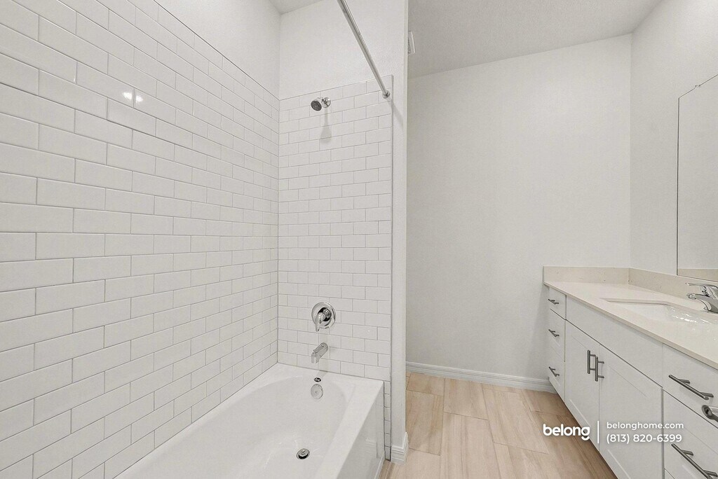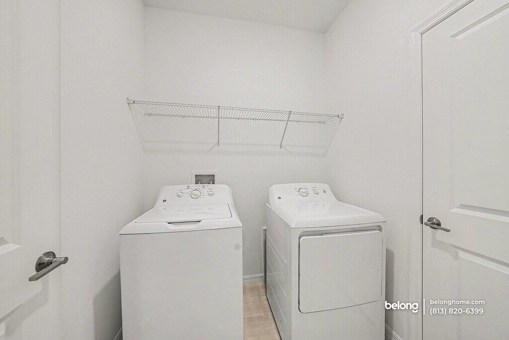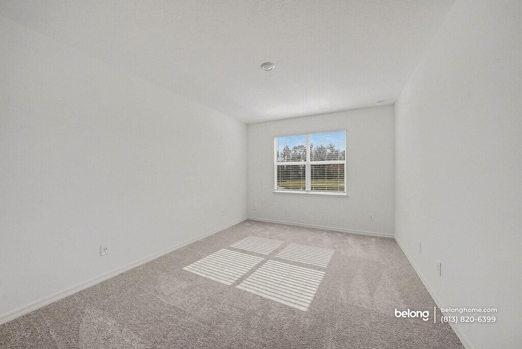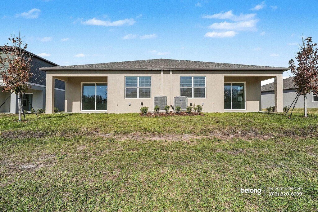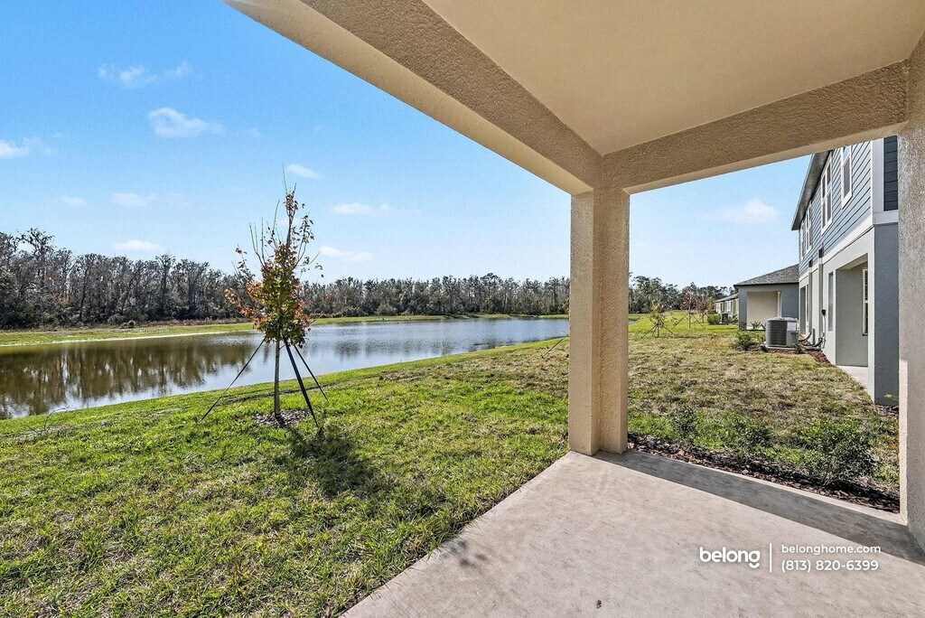 This cozy, brand-new construction offers a welcoming exterior and bright interiors that feel comfortable and easy to settle into. Soft natural light moves through wide windows and sliding glass doors, while a peaceful pond view adds a calming backdrop to the main living spaces. Clean finishes and simple lines create a warm, relaxed setting that feels inviting without feeling overstated. The main living area connects smoothly with the dining space and kitchen, offering an open setting that encourages lingering conversations and shared meals. The kitchen features generous counter space, crisp cabinetry, and a full appliance setup, with a peninsula that works well for morning coffee or simple prep. Tile flooring throughout the main areas keeps the look polished while remaining practical for daily use. Both bedrooms provide comfortable proportions, while two full baths and an additional half bath add flexibility to daily routines. A dedicated laundry room includes a washer and dryer, keeping essentials neatly tucked away. Community amenities include a shared pool, scenic trails, an on-site farm, a farmers market, a cafe, and a future lagoon, adding variety just steps from home. Nearby conveniences include Publix, Walmart Supercenter, and shopping and dining at The Shops at Wiregrass. Outdoor recreation is close by at Heritage Park and along the Suncoast Trail, making the surrounding area just as appealing as the home itself. *One pet is allowed, with breed restrictions. *Our homes come as-is with all essentials in working order. Want upgrades? Request it through the Belong app, and our trusted pros will take care of the rest!