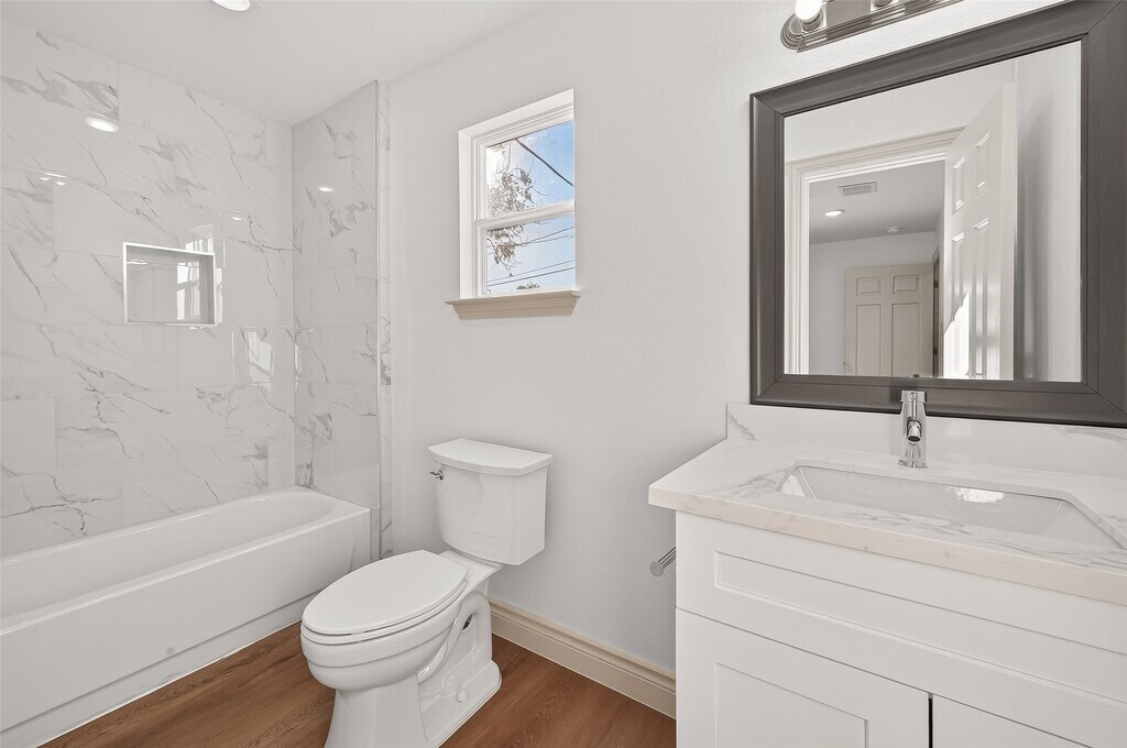 Completely gutted and beautifully renovated one story inner city house. This modern 4-bedroom,3-bathroom home offers stylish living in a prime Houston location. The open-concept layout features updated finishes throughout,creating a bright and functional space ideal for everyday living and entertaining. 2 primary bedrooms with adjoining bathrooms. The thoughtfully updated bathrooms provide comfort and flexibility for families,professionals,or roommates. Enjoy a fully fenced backyard,perfect for relaxing,entertaining,or outdoor activities. Conveniently located with quick access to Downtown Houston,major highways,shopping,dining,and entertainment. Nearby bicycle and walking trails add to the lifestyle appeal,making commuting and recreation effortless. This move-in-ready home combines modern upgrades with location and convenience MLS# 73016416