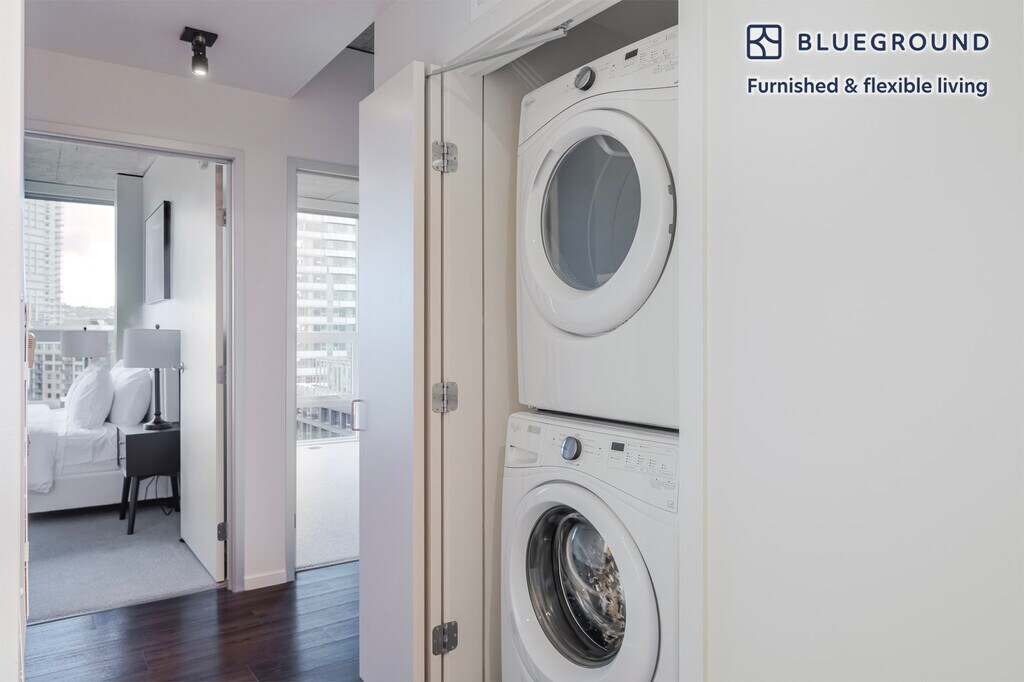 Discover the best of Seattle, with this two bedroom apartment in Denny Triangle. It’ll be easy to simply show up and start living in this furnished apartment with its fully equipped kitchen, living room, and our dedicated, on-the-ground support. (ID #SEA995) The advertised rate of $4,220/month is the lowest available price, based on a 12 month(s) stay with a move-in date of April 24, 2026. Rates vary depending on the duration of stay, season, and other parameters. For exact pricing and additional pricing components, please visit our website and enter your desired move-in and move-out dates. The rate is applicable when billed upfront; it can be higher if billed in multiple payments. Brokers are welcome to reach out. Were you looking for an unfurnished lease? Try Blueground instead and upgrade from unfurnished to furnished living: - Furnished at rates comparable to unfurnished - No setup or furniture costs - save thousands - Move-in ready - save time, just bring your suitcase Designed with you in mind Thoughtfully designed with bespoke finishes, modern furnishings, and a fully equipped kitchen, you’ll enjoy that “I’m home” feeling with this Blueground apartment. Whether you’re lounging in your charming living room streaming the latest and greatest entertainment on the smart TV or premium wireless speaker, or getting some well-earned rest on the superior quality mattress with fully stocked linens, you’ll fall in love with everything this Denny Triangle apartment has to offer. This apartment also offers in-apartment laundry. Sleeping arrangements King Bed, 70.8in/180cm Queen Bed, 63in/160cm Amenities Building amenities unique to this two bedroom apartment include an on-site: - Doorman - Dryer - Elevator - Swimming pool - Washing machine - Media room - Parking - Pets allowed - Rooftop BBQ Arrival and ongoing support The entire apartment is yours to enjoy! Throughout your stay, you’ll have access to our Client Experience team through the Blueground App. You can schedule additional cleanings, submit maintenance requests, and view our neighborhood recommendations with just a few taps. We’ll share all details upon confirmation of your stay. Ideally Located This furnished apartment is located in Denny Triangle, referring to the triangle-shaped area formed by Denny Way, Olive Way, and 5th Avenue. As the home of the Amazon Seattle headquarters, this area is a thoroughly developed business hub, full of high rise offices and condos. There’s no shortage of dining options here, offering practically every cuisine for lunch or dinner. This neighborhood is ideal for walking, and the central location makes it easy to go on foot to Downtown, South Lake Union or Capitol Hill. To get around, the King Country Metro Route 8 will be your guide. Other things to note Building amenities may have an extra cost. This Blueground apartment has flexible lease options, allowing you to book it for one month, a year, or more. Pets are welcome, though weight limits and breed restrictions apply and may incur fees. Parking is offered based on availability and is subject to a fee. We take great pride in ensuring every photo displayed is shot in our own units with our actual furnishings. That said, we regularly refresh our decor and furniture arrangement, which may differ from what’s pictured. [SI]