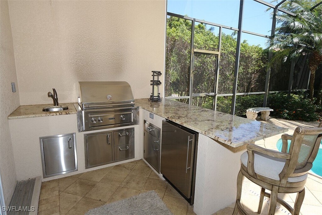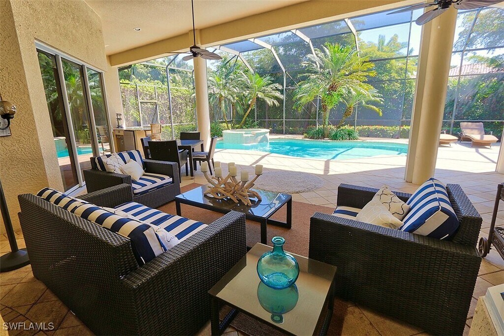 Rare Opportunity! Casual elegance describes this 3200' house,offering 4 bedrooms plus a Den/Office,3 full baths,and a 3-car garage,within a quiet community," The Moorings",west of US 41,and just a short distance to the Gulf of Mexico and its' beautiful,white,sandy beach. A bright and open floor-plan,with a Chef's kitchen,wet bar and wine cooler,saturnia marble and wood floors,tray ceilings,flat-screen TV's,and custom décor. A perfect place to entertain family and friends,this house offers a quiet living room,separate dining room,office,casual family room off the kitchen and casual dining area. The Master Suite has a King-size bed,sitting area,flat-screen T.V.,walk-in closets,and private bath with a separate tub and walk-in shower. The Guest bedroom offers a Queen-size bed,flat-screen T.V.,spacious closet and private bath with a walk-in shower. The other 2 guest bedrooms have queen-size beds,spacious closets and share a bath with a tub/shower. The screened-in Lanai offers quiet solitude,heated salt-water pool/spa,outdoor summer kitchen with gas grill,plenty of outdoor seating/dining area to relax by,and chaise lounges. The Landlord offers 2 bikes,beach toys,chairs,extra refrigerator,and more. You will enjoy the private "Moorings Beach",with easy parking,and the close proximity to shops,restaurants and entertainment along the southern 5th Ave.,and Third Street shopping destinations,or further north to the Venetian Village and Mercato shopping destinations.