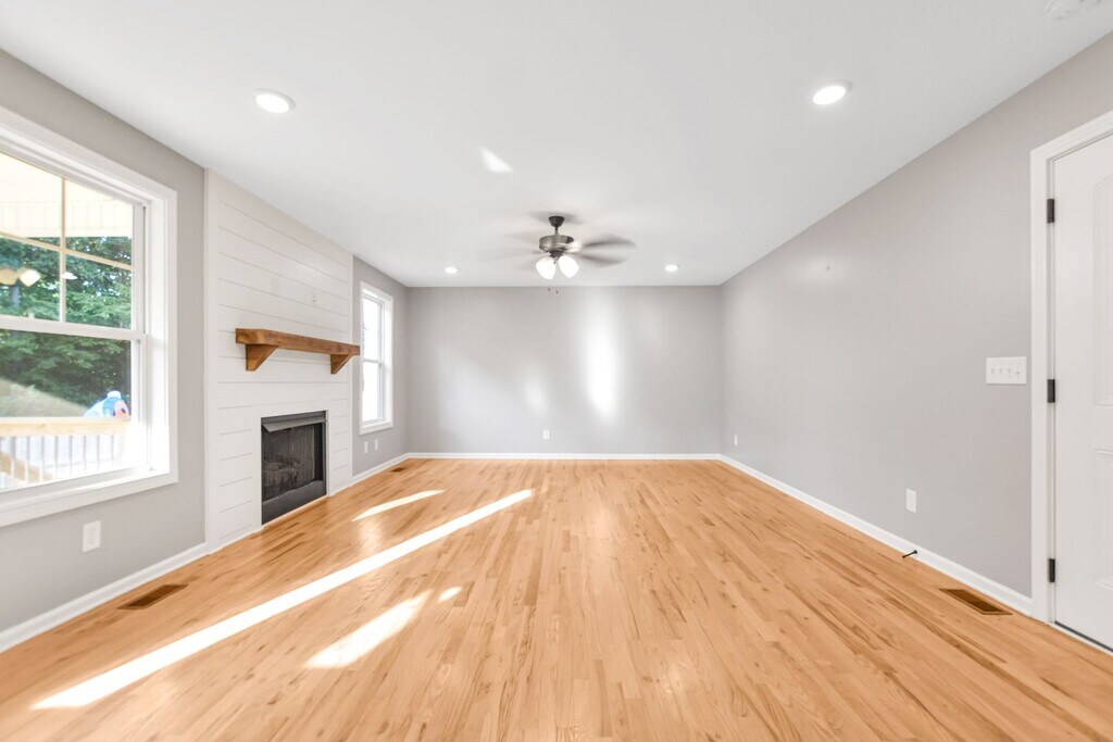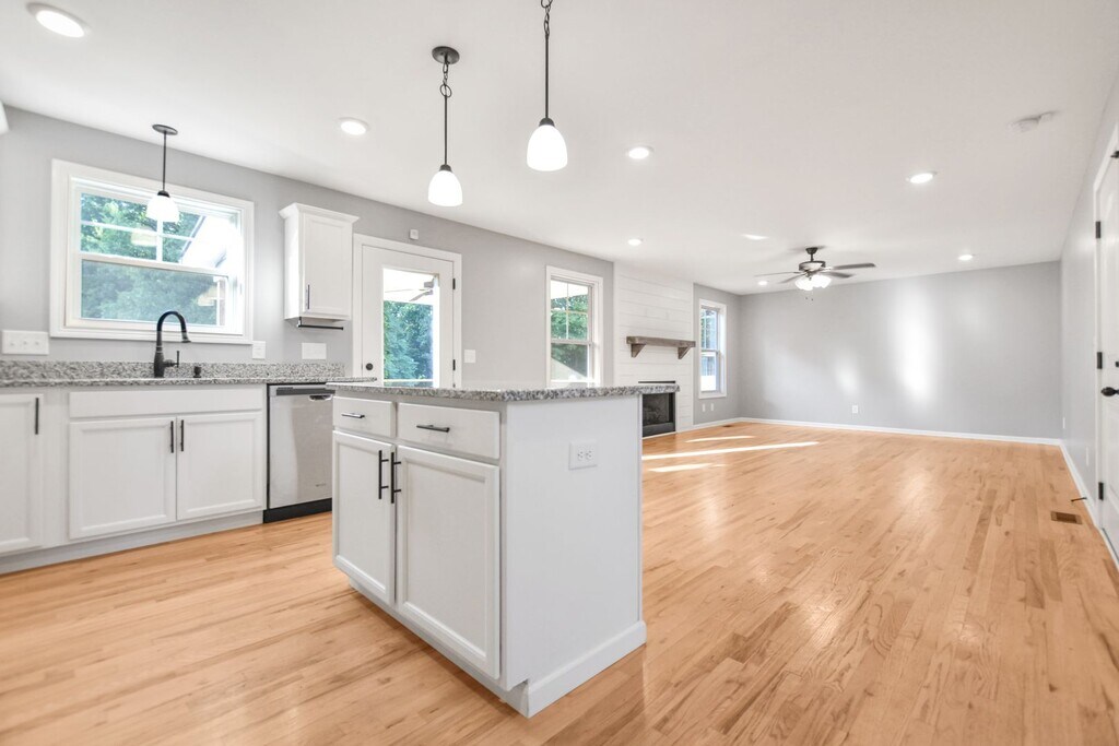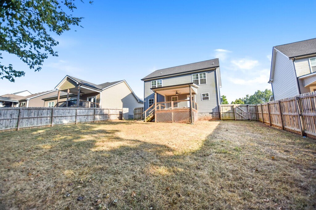 Beautifully maintained three bedroom home just minutes from shopping, restaurants, and more! True hardwood floors, living room with a stylish shiplap fireplace, and gorgeous eat in kitchen with granite countertops, stainless steel appliances, and a spacious island for all your culinary needs! The large primary suite features a full bath with double vanity and a generous walk-in closet! Both guest rooms are generously sized! The outdoor space is perfect for relaxation and entertainment, featuring a covered deck and a tree lined lot that provides both privacy and tranquility! Pet Rent Scale - Dogs: $25.00 per month - Cats: $35.00 per month
