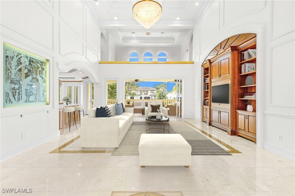 Incredible opportunity to rent one of the most coveted waterfront properties in Aqualane Shores—incredible value. With over 135 feet of deep-water frontage along one of the neighborhood’s widest canals,this oversized corner lot offers the kind of dockage that serious boaters dream about. Direct Gulf access,multiple slips,a wraparound dock,and open water views. Spectacular canal,offering unparalleled privacy and panoramic water views. With immediate proximity to Naples Bay and no bridges,this is a premier location for those seeking effortless boating and refined coastal living. This home spans 4,487 square feet under air with 4 bedrooms,3.5 bathrooms,a main-floor primary suite,and an office. Soaring ceilings in the living room create an impressive entrance,seamlessly connecting to the open-concept kitchen and dining areas. A custom elevator leads to the upper level with three guest suites and a loft-style sitting area. The ground floor opens to an additional 1,400 square feet of air-conditioned space—ideal for entertaining,a gym,or game room. Step outside to the large and inviting pool and spa,outdoor kitchen,and expansive deck that makes the most of the stunning waterfront setting. For the boating enthusiast,the dock includes two slips with lifts,a separate platform for kayaks or jet skis,and deep water that can accommodate larger vessels—an offering that sets this property apart from the rest. Interior finishes include quartzite countertops,custom cabinetry,stone flooring,impact-resistant windows,and an updated primary bathroom—providing both style and function. Move in and enjoy,or reimagine the property into your dream estate on one of Aqualane’s premier lots. Located just a short walk to the beach and Naples’ famed 3rd Street South dining and shopping district,this home offers the perfect blend of seclusion and access. This is the best waterfront value in Aqualane Shores—don’t miss your chance to rent a true boater’s paradise. Home was virtually staged. Furniture coming soon.
