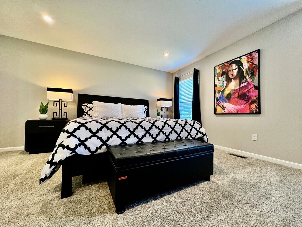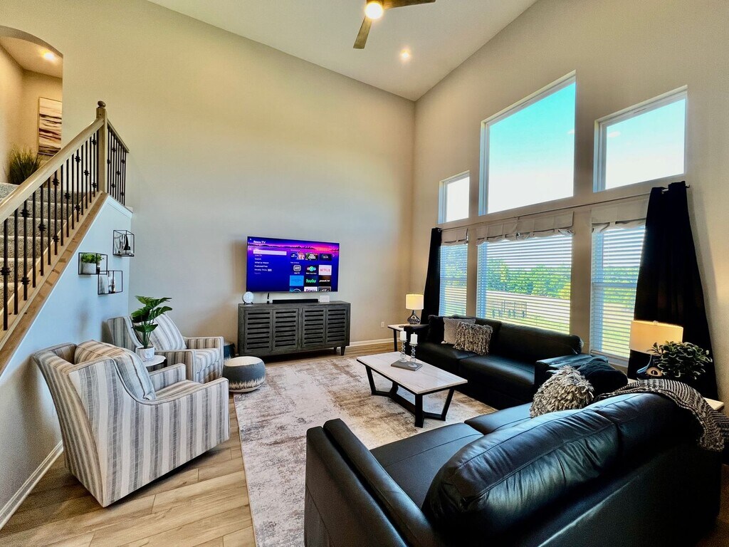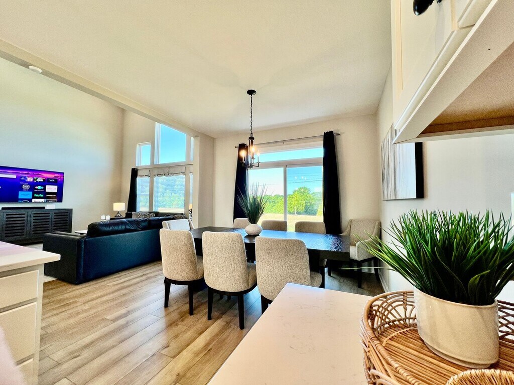 Wow! This Fully Furnished Executive Corporate Rental is Awesome! Tons of space and room to breathe. Perfectly decorated brand new built home on private cul-de-sac street. This home features brilliant high-end finishes and comes completely furnished. There is a high definition flat screen television in each room. The home has lightning fast internet. Everything is included, just bring your personal items. A blend of comfort, style, and convenience greets you as soon as you enter our newly built open-concept home. While decorating this inviting retreat, we have worked hard to create a home away from home feeling for you and your guests. The living area is the home's heartbeat. This open-concept home with cathedral ceilings successfully combines the relaxing living room with an inviting dining area and a fully equipped kitchen. Large windows allow plenty of natural light to illuminate the space throughout the day. The laminate floors and tasteful décor create a feeling of warmth and coziness in this home. Five comfortable bedrooms are designed to offer all the rest you need after a long day of exploring or working in Miamisburg. The home offers many amenities and spaces, and we can't wait for you to experience them all. ? LIVING ROOM ? The living room is a part of the contemporary open floor plan. See what the chef is up to, help them set the table, or unwind on the sofa with a good book. ? Comfortable Leather Sofa with Pillows ? 65 Inch Smart TV ? Coffee Tables ? Reading Lamps ? KITCHEN & DINING ? Even the most demanding chefs would enjoy preparing delicious meals using numerous state-of-the-art cooking appliances. In addition, spacious countertops provide plenty of workspaces for you to prepare delicious homemade delicacies or late-night snacks. ? Microwave ? Stove ? Oven ? Toaster ? Refrigerator/Freezer ? Keurig Coffee Maker ? Dishwasher ? Sink - Hot & Cold Water ? Trays ? Glasses ? Silverware ? Pots & Pans Serve those delicious meals on the adjacent dining table, and let the smell of freshly cooked homemade delicacies invite everyone in for a tasty feast. ? Dining Table with Seating for 6 ? SLEEPING ARRANGEMENTS - 5 BEDROOMS ? Five tastefully furnished bedrooms are designed to provide hotel-like comfort and convenience needed to relax and rest so you can remain energized and do everything you have planned the next day. ? Master Bedroom: King-Size Bed, Ensuite Bathroom ? Bedroom 2: King-Size Bed ? Bedroom 3: King-Size Bed ? Bedroom 4: Queen-Size Bed ? Bedroom 5: Two Twins All bedrooms are equipped with a similar set of amenities. ? Premium Pillows, Linens, and Sheets ? Closets with Hangers and Shelves ? Dressers with Spacious Drawers ? Night Stands with Reading Lights ? 55-inch Smart TV in all bedrooms ? BATHROOMS ? The master bedroom features an ensuite bath. Another full bathroom caters to the remaining four bedrooms. There is a half bath downstairs near the living spaces. You don't have to worry about packing towels or essential toiletries, as we have already prepared these for you. ? Bathtub with a Shower ? Vanity ? Mirror ? Toilet ? Towels ? Hair Dryer ? Essential Toiletries Feel free to let us know if you have any questions about this beautiful home. We are more than happy to assist! The entire home is exclusively yours without interruption during your stay, so relax, unwind, and make yourself at home. In addition to the already mentioned amenities, the house also features: ? High-Speed Wi-Fi ? Central Air Conditioning ? Central Heating ? Washer/Dryer ? Iron/Board ? Free Parking ? ADDITIONAL ACCOMMODATION ? Traveling in a larger group, or your preferred dates are already taken? You'll be happy to know that we offer additional accommodation in the area. Please browse our host profile for the complete list of Homes. ? COVID-19 SANITIZATION ? Heath, safety, and well-being of our guests are of utmost importance. For this reason, we use a thorough cleaning process after each check-out. ? NO SMOKING INSIDE ? Please refrain from smoking inside the home! Any smoking evidence will result in a fee for odor removal and furniture cleaning. ? NO PARTIES/EVENTS ? We kindly ask you to treat our home as your own to preserve its pristine condition for future guests and your return visits.