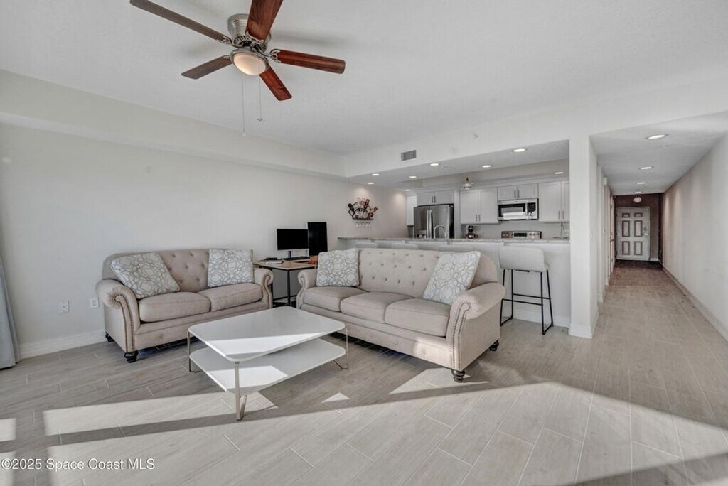 Luxury 2 bedroom, 2 bathroom direct riverfront condo. This 2nd floor home offers panoramic views from your private balcony and main living areas. Front row seating for historic rocket launches and dolphin sightings! Luxurious features include granite countertops, soft close cabinetry, breakfast bar, 4 inch baseboards, tile plank flooring throughout and stainless steel appliances. This is an elevator building with a secure lobby and garage parking is included. River Palms offers a riverfront community pool and spacious recreation room with full kitchen. Walking distance to historic downtown Titusville. Ideally located close to restaurants, shopping, Kennedy Space Center, beaches and 40 minutes from Orlando International Airport. Enjoy the Florida lifestyle! Furnishings may not be as depicted in pictures. Call Alice Desiongco