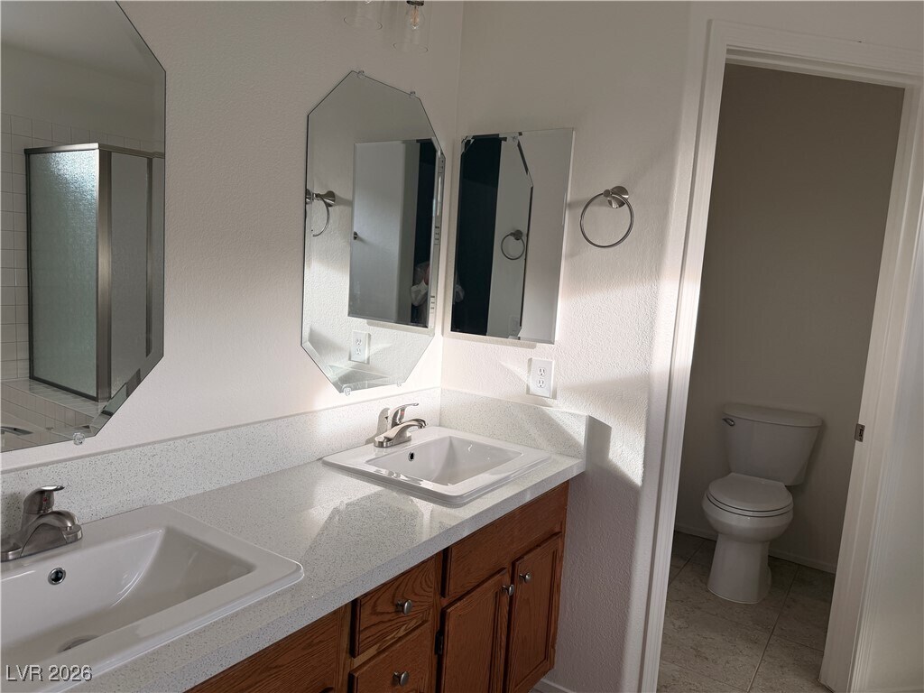 Beautifully refreshed two-story corner lot home located in desirable Summerlin. This home features 4 bedrooms and 3 bathrooms, including a convenient downstairs bedroom. The spacious primary suite offers dual sinks, a separate shower, and a walk-in closet. Enjoy both a casual living room with vinyl and a comfortable family room, perfect for relaxing or entertaining. The sun-filled kitchen includes tile countertops, dishwasher, pantry, garbage disposal, and refrigerator. A wonderful opportunity to own a well-maintained home in a prime location.