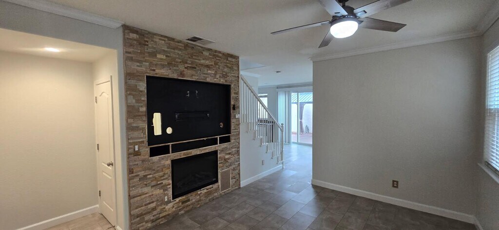 Welcome to this charming Lathrop home offering 4 bedrooms and 3 Baths 2 Car Garage! The first-floor bedroom and full bath are perfect for multigenerational living or a comfortable home office. The bright kitchen features solid-surface countertops, stainless steel appliances with a gas cooktop all stainless steel appliances recessed lighting, crown molding, and plenty of storage and don't forget the pantry, plus a formal dining room just steps away. A cozy highlight of the home is the living room, complete with a gorgeous stacked-stone accent wall, custom built-in entertainment center, and electric fireplace—an ideal spot for gatherings or quiet evenings at home. Upstairs you'll find the spacious primary suite along with two additional bedrooms and a laundry room with washer and dryer included. The primary suite includes generous windows, a walk-in closet, and a relaxing en-suite featuring dual vanities, a soaking tub, and a separate shower. With new tile flooring throughout, ceiling fans, and central heat and AC, this home is move-in ready. Enjoy being close to freeways, schools, shops, entertainment, River Islands, and the beautiful Delta waterways. Small Pet ok with paid pet deposit. Home has security alarm system and also Solar Power monthly savings on your monthly electric bill. This home is move in ready just in time for the New Year.. Renters Insurance is required DRE# 01835367 At Valleywide Property Management, we strive to provide an experience that is cost-effective and convenient. That's why we provide a Resident Benefits Package (RBP) to address common headaches for our residents. Our program handles insurance, air filter changes, credit building (optional) and more at a rate of $39.95/month, added to every property as a required program. More details upon application. Total Monthly Payment (Rent + RBP)*: $3,034.95} *If you provide your own insurance policy, the RBP cost will be reduced by the amount of the insurance premium billed by Second Nature Insurance Services (NPN No. 20224621).