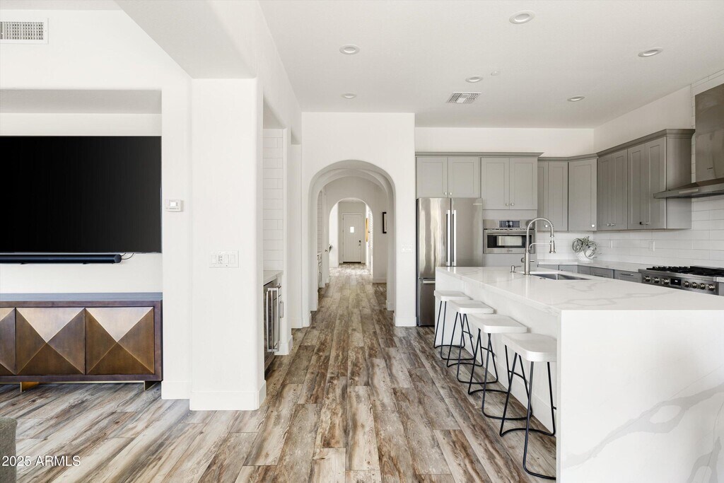 Long-term (min 6 month) rental in the heart of DC Ranch,backing to a natural preserve with no neighbors behind. This beautifully updated home offers five bedrooms,3.5 remodeled bathrooms,two versatile office/flex spaces,and a spacious loft. The gourmet kitchen features Bosch appliances,custom cabinetry,and quartz countertops,opening seamlessly to a warm and inviting great room with stunning McDowell Mountain views. Enjoy access to DC Ranch amenities including walking paths,parks,pools,tennis,pickleball,playgrounds. Available furnished or unfurnished; terms and pricing may vary based on selection.
