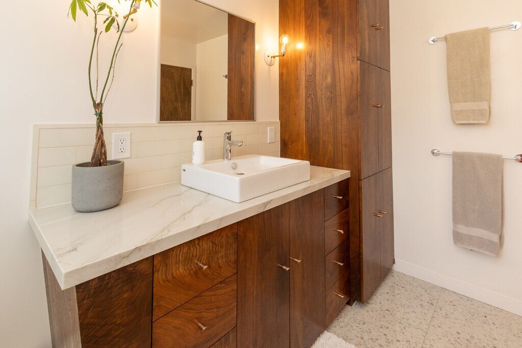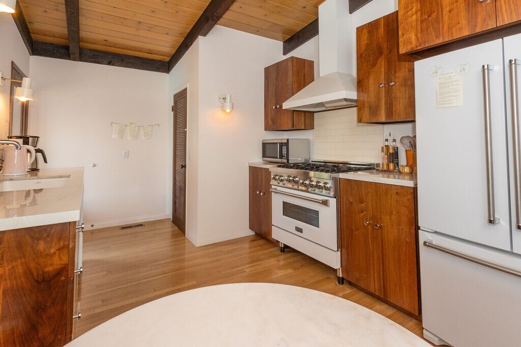 Just minutes from the coast and tucked away on 1.56 private acres in Encinitas, this stunning gated and furnished mid century modern home offers expansive canyon views and effortless indoor-outdoor living! The separate upper level main residence features 2 spacious bedrooms and 2 bathrooms. The living room, dining area and primary suite are perfectly positioned to capture the views, opening to a sweeping wraparound deck that creates a seamless indoor-outdoor feel. Inside, you’ll find wood flooring, exposed beam ceilings, and timeless mid century details throughout. The spacious kitchen is both stylish and functional, complete with custom wood cabinetry, open shelving, top quality white appliances, a cozy breakfast nook, and a spacious pantry. The primary suite offers generous closet space and a beautifully designed en-suite bathroom with double sinks, terrazzo flooring, marble countertops, and custom cabinetry. The guest bath continues with the same aesthetic and includes a beautifully tiled soaking tub. Conveniently located in the hallway closet is a washer and dryer. With the separate lower space you’ll find two bedrooms and one full bath, along with a space that feels fresh and modern with polished concrete floors and warm wood accents which create a cool, loft-like atmosphere. Two oversized garage style doors roll open to flood the area with natural light and fresh air, creating a seamless connection to the outdoors. The kitchen is both stylish and functional, featuring stainless steel appliances, concrete countertops, custom tile work, open shelving, and generous pantry storage. For added convenience, the lower level includes its own washer and dryer. The outdoor space truly sets this property apart. A resort style pool and expansive, sun soaked decks overlooking the canyon create a private retreat that feel miles away from it all. Whether you’re entertaining, relaxing poolside, or enjoying a quiet sunset, this home was designed to make the most of its incredible surroundings. Nestled in Encinitas’ highly sought after Crest Corridor, this prestigious yet laid back neighborhood is known for its old California charm, mature landscaping, and iconic Torrey Pines lining quiet streets. Enjoy the best of coastal living without the congestion, with easy access west to legendary surf breaks, Seaside Market, and the vibrant shops and dining along Historic Highway 101, and east to everyday conveniences like Trader Joe’s and Target. Close to award winning schools, scenic trails, and world class beaches. TO VIEW THIS PROPERTY, please submit a contact card through our website at for this property and a showing agent will reach out via text message and/or email to invite you to the next open house. For non-showing related questions, you can call ext 3 and leave a message. All prospective applicants are required to physically view a property in order for their application(s) to be processed. Substitutes/representatives are not accepted. $40 application fee per person. Lease until 5/31/2027 with the option to renew for an additional year. Deposit equals one month's rent. Tenant responsible for water/sewer/trash utilities. Pets allowed for an additional $95/month and increased security deposit of $500. Breed restrictions may apply. Advantage Team Property Management/bre lic 01387165 Check us out on Facebook + Instagram: