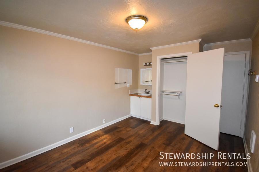 First floor efficiency studio close to UO campus. This unit features a personal vanity/sink and closet, shared kitchen and bathroom, and on-site laundry. First come first serve off-street parking with paid parking pass, and bike racks available around the complex! $30.00 monthly utility fee covers electric, water, sewer, and garbage. Free internet included! Properties are only shown to approved applicants! No application fee! For more information or to apply please go to Apartment Carpet Close To University Of Oregon Downstairs Efficiency Studio Electric Heat Free Internet Limited Paid Parking No Pets Allowed Shared Bathroom Shared Kitchen Vinyl Windows