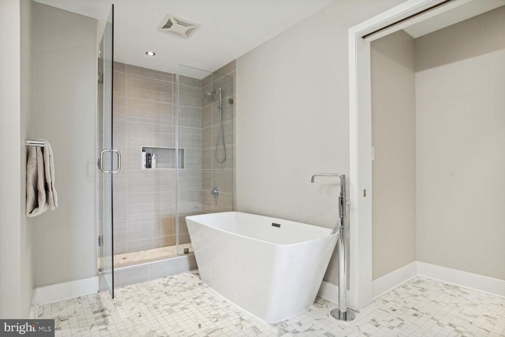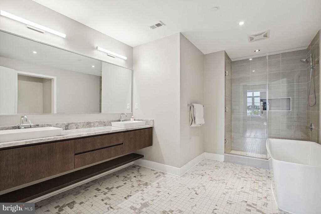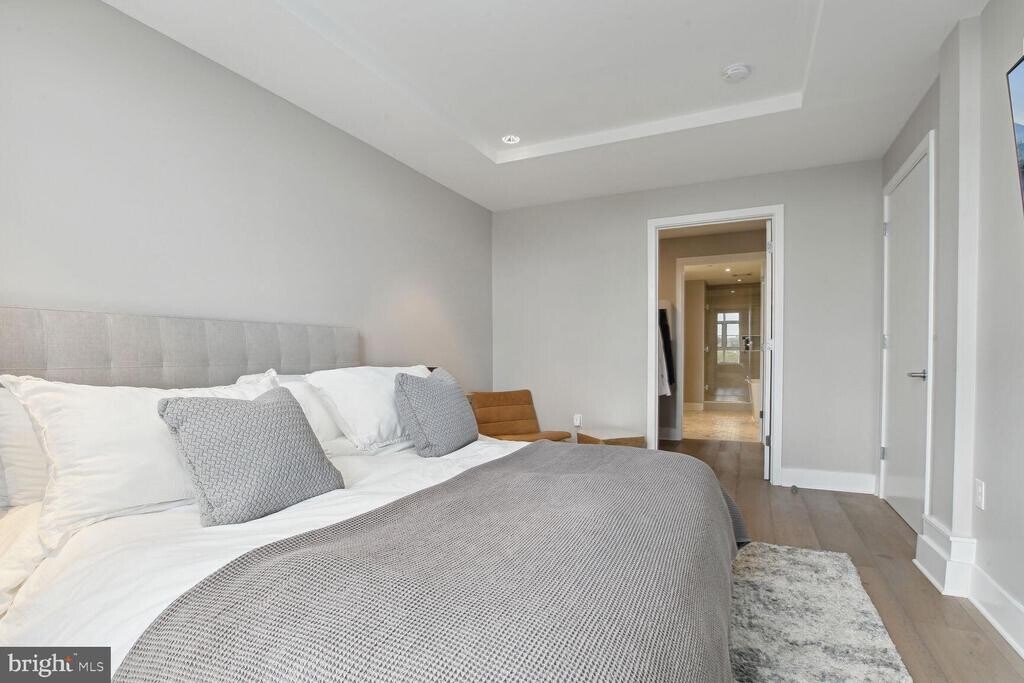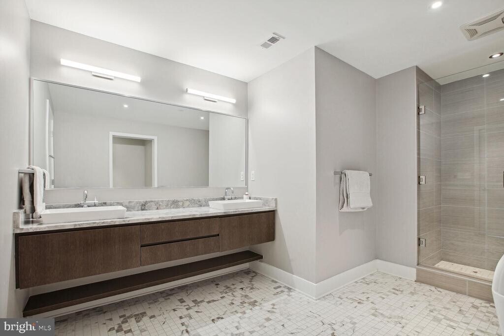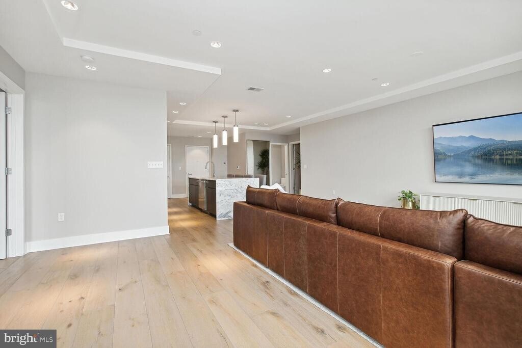 With over 1,500 square feet of refined interior living space, Residence 405 at The Adora is a rare offering that seamlessly blends historic character with modern luxury in the heart of Shaw. This expansive two-bedroom, two-bath residence features soaring 9-foot ceilings, dramatic floor-to-ceiling windows, and stunning 8†oak hardwood flooring throughout. The chef’s kitchen is designed to impress, showcasing sleek Italkraft cabinetry, a granite waterfall island, designer LED lighting, and a premium Thermador appliance suite including a 5-burner gas range, 36†refrigeration column, 24†freezer column, and an 18†wine column. The spa-inspired primary bath offers a double-sink vanity, deep soaking tub, and a large glass-enclosed shower—creating a true retreat. Both bedrooms feature generously sized walk-in closets. Custom motorized drapery in the primary suite and motorized top-down honeycomb shades in the living and dining areas add both convenience and sophistication. Residents of The Adora enjoy secure, private garage parking with ample storage and bike storage, a private residential lobby, an elegant sky lounge, and a rooftop terrace complete with a gas grill—perfect for entertaining against the DC skyline. Built within the preserved architecture of one of DC’s oldest bakeries, The Adora offers a unique blend of historic charm and contemporary design in the vibrant Shaw neighborhood. Just outside your door is the iconic Howard Theatre, along with acclaimed restaurants, cafés, and boutiques. Only two blocks to Whole Foods Market and Metro access, this premier location boasts an exceptional Walk Score of 98.