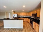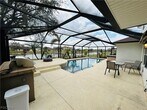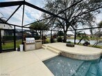 Beautiful and spacious two-story home located in the desirable gated community of Town Lakes. This well-maintained property offers a functional and comfortable layout with the primary suite conveniently located on the first floor,along with a guest bathroom. The first floor features tile flooring throughout,a large open kitchen with coffee bar,pantry,and plenty of storage space,perfect for everyday living and entertaining. Step outside to enjoy the screened lanai with a private pool,lake view,electric firepit,outdoor BBQ area,and mini fridge,creating the perfect outdoor living space. The property is fully fenced,offering privacy and additional space for a patio area and pets. Upstairs you will find a spacious laundry room with sink and plenty of room for folding,hanging,and storage,along with four large bedrooms with generous closets,two full bathrooms,and a large den/loft area that can be used as a media room,office,or playroom. This home offers plenty of space,storage,and comfort,and is move-in ready. Schedule your private showing today and make this beautiful home yours!