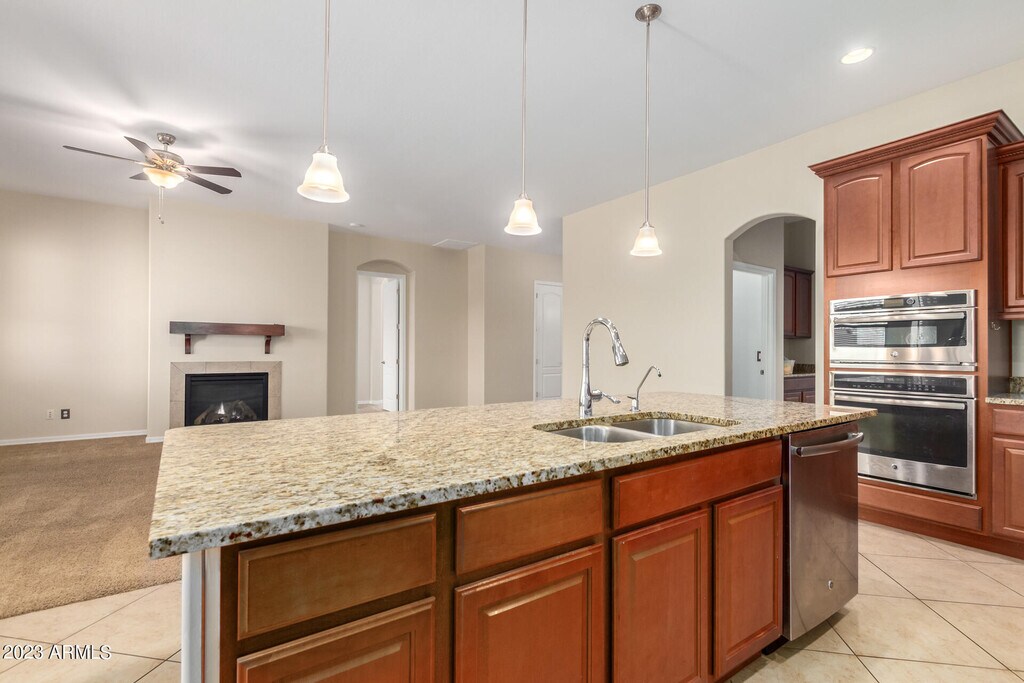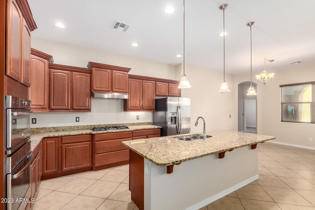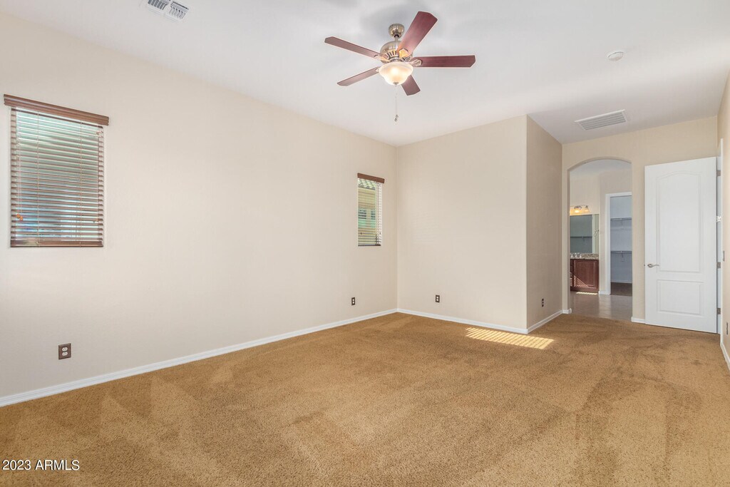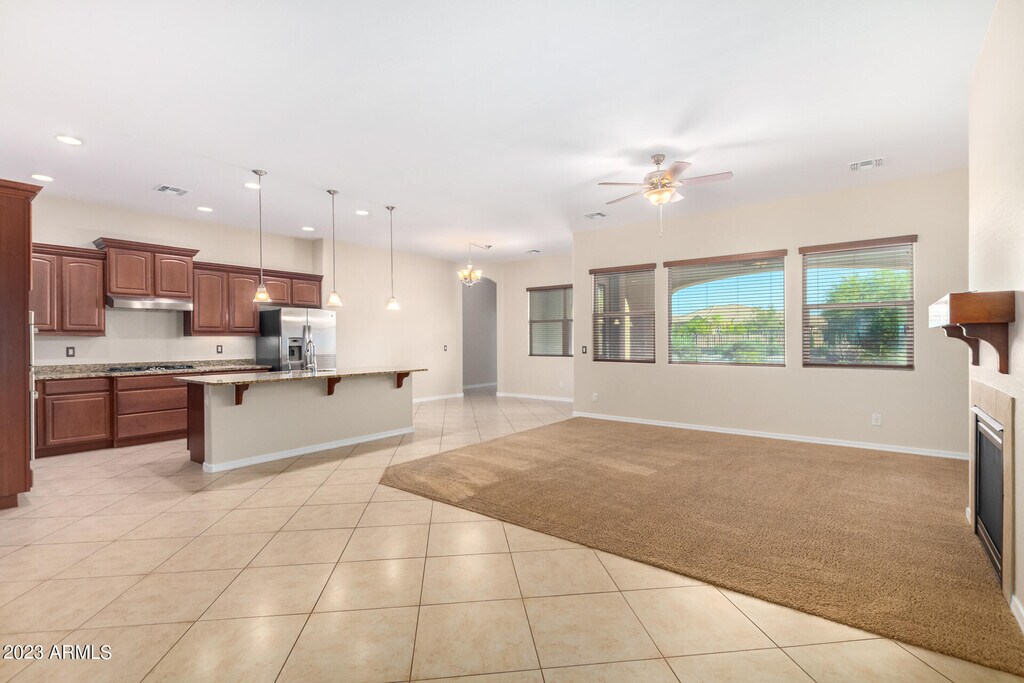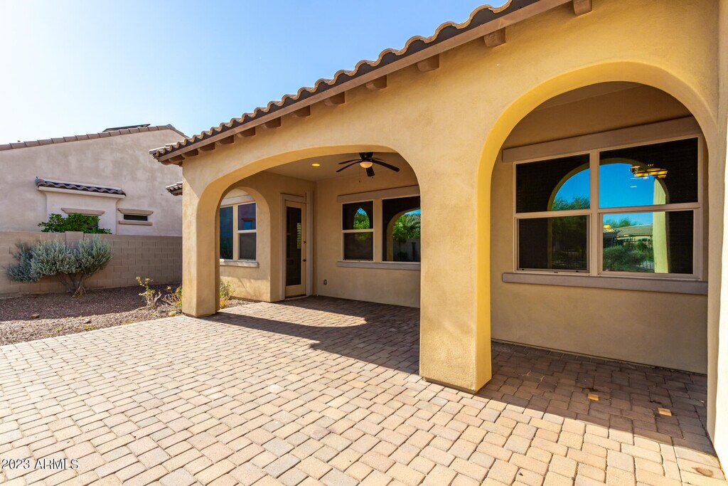 Enjoy SOLAR savings.. Executive rental! Open Floor Plan,Split Master,Single Level,View Lot Home with Gourmet Kitchen (Stainless Refrigerator,Washer,& Dryer ALL Convey). The Great Room Features a Custom Mantle & Gas Fireplace. 2nd & 3rd Bedrooms Connect With a Jack & Jill Bath. The Stacked 3-Car Garage Has An Entire Wall Of Storage Cabinets With Space For All Your Vehicles. Outside You'll Find A Large Backyard With A Raised Verranda,Perfect For Enjoying Morning Coffee or Sunset Glasses Of Wine While Gazing At View Fencing Sightlines Of Serenity Park And The Estrella Mtns. There Is Also Easy Access To Hiking/Biking Trails At The Highly Rated F.I.N.S. Trail System. community pool and other community amenities all inclusive. Resort style community! Small pets only- assistive animals.