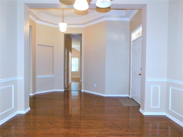 Spacious four bedroom, two bath one-story home in Corinth with lots of extras! Open kitchen and living room area with a formal dining room off entry and a separate breakfast area. Living room includes a wood burning fireplace and built in shelves. Additional living area between secondary bedrooms. Enclosed sunroom leading to large backyard. Oversized three-car garage! Owner covers HOA dues. Walkable to Hawk elementary and Crownover middle school. Guyer school district. Refrigerator Included.