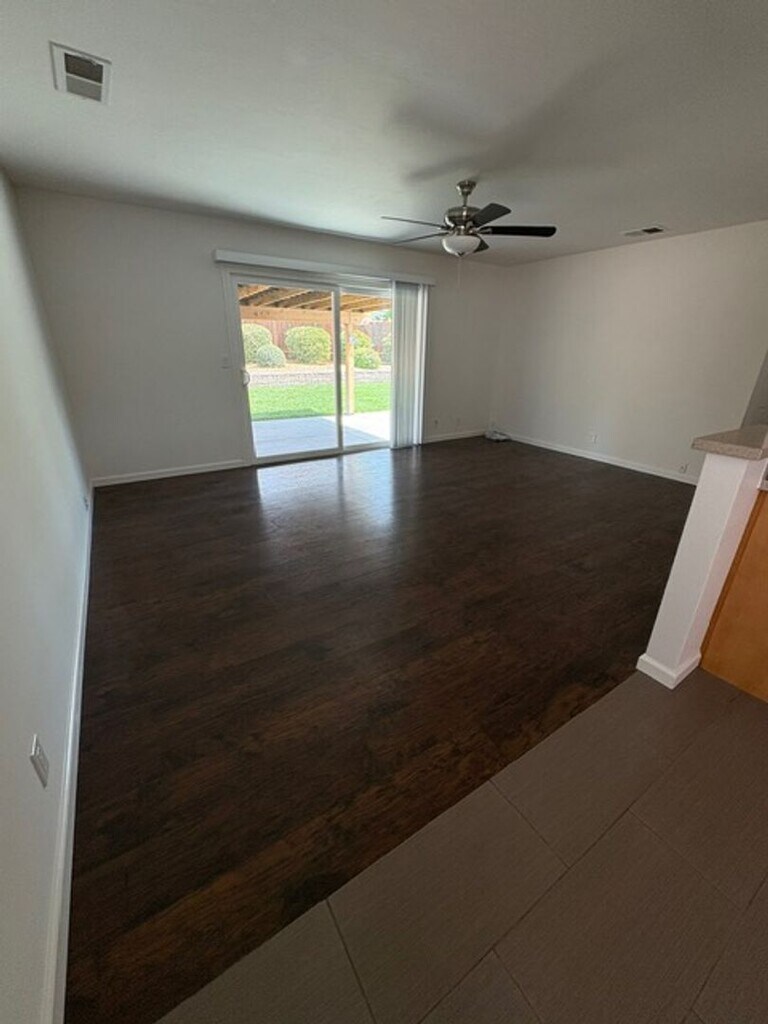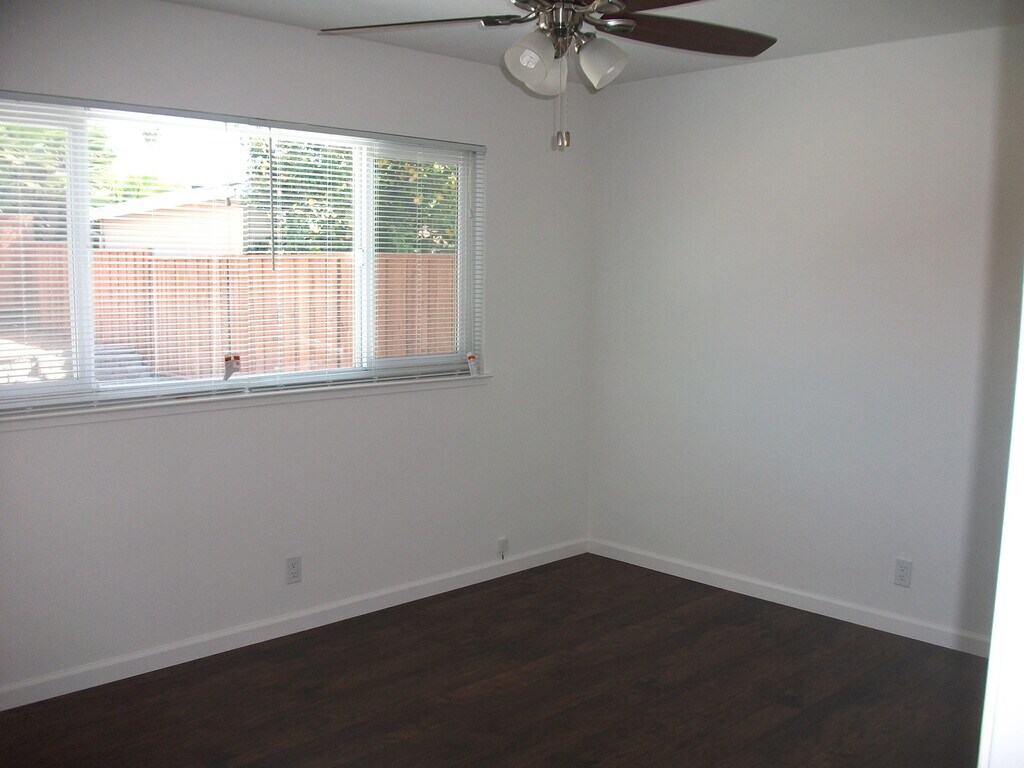 This home has been completely updated with fresh paint, modern appliances, stylish light fixtures, laminate and tile flooring, and more. General upgrades include a serviced and upgraded forced-air heater, fresh interior paint, new window shades, and a new kitchen faucet. The kitchen features brand-new GE appliances, including a 5-burner stove and oven, 25.3 cu ft side-by-side refrigerator, microwave, and dishwasher. Each room has a new 3-speed ceiling fan, there’s a new dual-pane sliding door in the living room, a new thermostat, and new smoke and carbon monoxide detectors. Lighting has been enhanced with canned lights added to the entry and hallway and replaced in the kitchen. The hall bath has a new toilet, countertop and sink, over-toilet cabinet, updated lighting, accessories, fan/light fixture, reglazed tub with a non-slip bottom, and a new mirror. The master bath features a new toilet, sink cabinet, over-toilet cabinet, updated lighting, accessories, fan/light fixture, and a new pocket door. A new shade has also been added to the garage window. The backyard has new sod, adjusted and replaced sprinklers, six new plants along the fence, and a power-washed patio cover and concrete. No pets