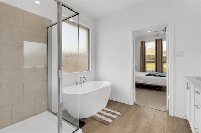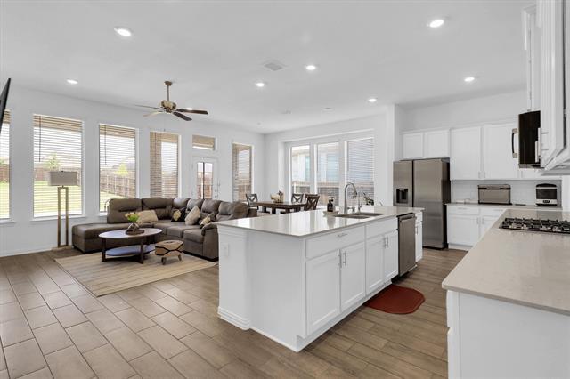 Welcome home to this single-story gem on a massive corner lot! From the beautiful exterior to the inviting entry, this home offers flexible space for your every need. Inside you’ll find four spacious bedrooms and three full bathrooms, including a front-of-the-house retreat with a second living area and ensuite bath — ideal for guests or the perfect home office setup. The light, bright eat-in kitchen is a chef’s delight with a gas cooktop, stainless steel appliances, walk-in pantry, and generous cabinet space, all opening seamlessly into the main living area for effortless entertaining. Large windows fill the home with natural light, creating a warm and welcoming atmosphere throughout. The private primary suite is a true retreat, offering room for a sitting area plus a spa-like ensuite bath with dual vanities, two walk-in closets, a separate shower, and a relaxing soaking tub. Enjoy community amenities including a pool and pocket park just steps away, with Lake Lewisville and plenty of shopping and dining in both Little Elm and Frisco. This charmer has it all — space, style, and a location you’ll love!