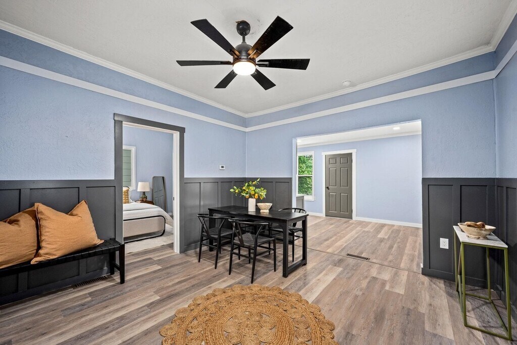 An absolute gem remodeled from top to bottom and completely move-in ready! This home features a brand-new furnace, new flooring throughout, a new gas fireplace, and all-new appliances including dishwasher, stove, and microwave. The fully updated bathroom showcases modern finishes and thoughtful design. The bright, open living space is warm and inviting, centered around the stunning gas fireplace perfect for cozy evenings or entertaining guests. Fresh interior and exterior paint, new cabinets, and stylish contemporary details complete the transformation. Located just a few blocks from the vibrant Perry District, you'll enjoy easy access to The Meeting House Cafe, local shops, restaurants, and the beloved Thursday farmer's market. Experience the perfect blend of convenience, community, and charm in one of the city's most desirable neighborhoods. No garage, but there is a cement slab for parking or car storage.