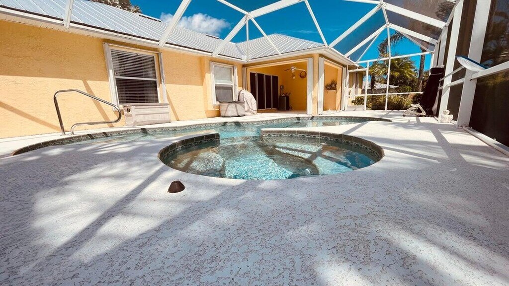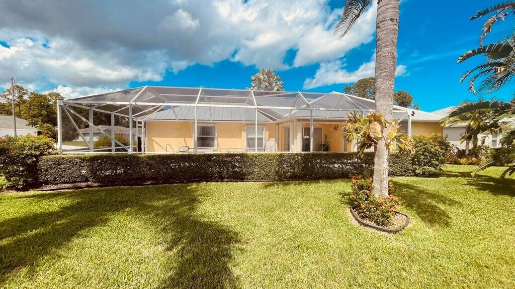 COME get-away to this meticulously maintained 4 bedrooms 3 bathroom heated pool and spa paradise. Situated on a corner lot with lush landscaping in a desirable Saint Lucie West neighborhood. The updated kitchen features a pantry, granite countertops, stainless steel appliances a breakfast nook that overlooks the pool, and a breakfast bar. The primary bedroom boasts double coffered ceilings a large walk-in closet, dual sinks and a separate soaking tub and shower. Other features include impact windows in the front of the home and the remaining windows have accordion shutters. There is a 6 zone sprinkler system on a well, a propane tank heater for the hot tub and pool. Let's Go!!...Lawn and pool service included.