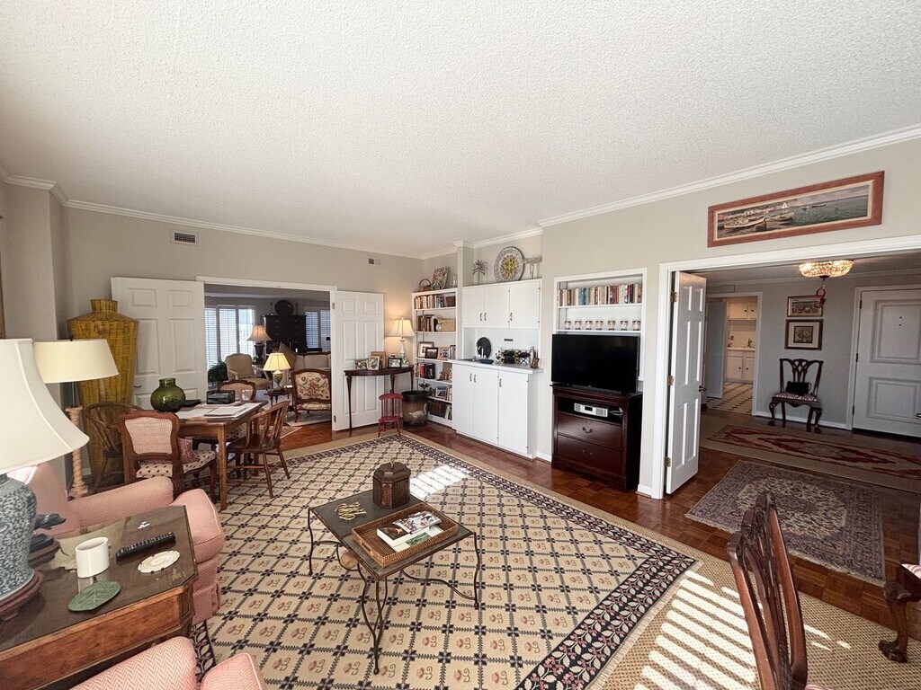Available 3/1/26 This spacious 2 bedroom 3.5 bath condo was created by combining 2 units into one large condo. This condo features a formal dining room and HUGE living room with sweeping views of the city! A separate den could be used as a 3rd bedroom. Half bath for guest use is next to a large utility room with washer and dryer and ample space for storage. The guest bedroom uses the full bath in the hall and the master has his and her separate bathrooms! Yes, 2 bathrooms and 2 closets in the master. The den and both bedrooms have sliding glass doors providing spectacular views of our fine city and access to the patio that is on two sides of the building, providing different views. *Shown by appointment only.