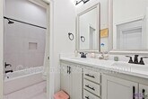 This charming Rouzan cottage is available for immediate occupancy. Lovely 2 story home featuring 3 bedrooms and 2.5 baths with over 1700 square feet of living space! Step up to the very inviting front porch into the open living and kitchen. The dining is separated by an exposed beam and has views of the front yard. The gourmet kitchen features custom painted cabinets with lots of cabinet space & under cabinet lighting, stainless appliances including a WOLF cooktop, quartz counter surfaces, custom backsplash, walk in pantry, large center island with granite composite single vessel sink and two hanging pendants. Primary suite is located off the rear of the home for peace and quiet and has all wood flooring. Lovely master bath features dual vanities with quartz counter surfaces, custom tiled shower, framed mirrors, oil rubbed bronze plumbing and a walk in closet. The wood staircase with iron railing leads you upstairs to the two spacious bedrooms, both with walk in closets and a full bath with dual vanities. Nice side yard that is fully fenced. Rouzan has amenities such as pool, clubhouse, walking trails and more! Minutes to it all. Tenant pays all utilities