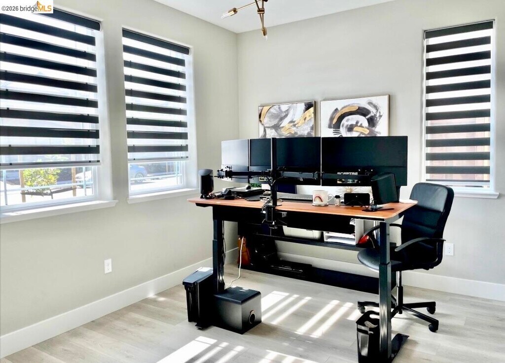 Beautiful 3-bedroom,2.5-bath two-story home with downstairs office and upstairs loft. Open floor plan with laminated flooring in main living areas. Electrical blinds in downstairs area. Functional layout with spacious living and dining area. 2 car Garage,with finished epoxy garage floor and shelves for extra storage. Tranquil back yard patio. Low-maintenance front and back yards (artificial lawn). Conveniently located near park (across the street),shopping,and everyday amenities. Apply with RentSpree