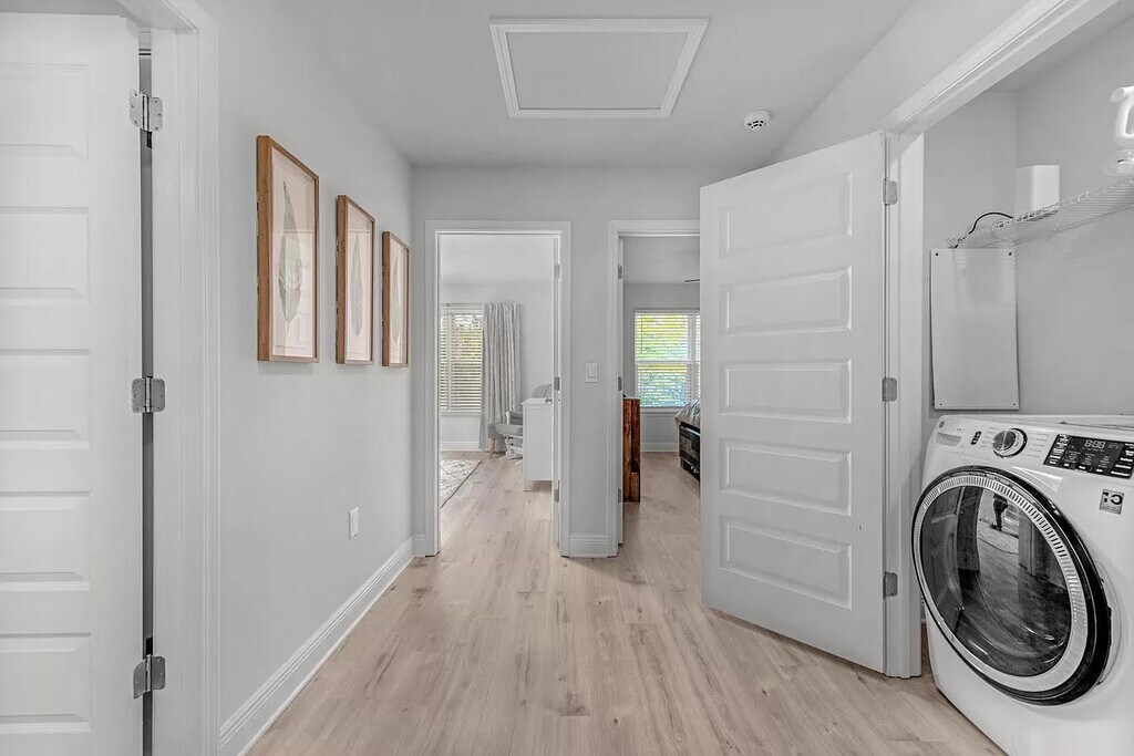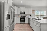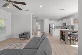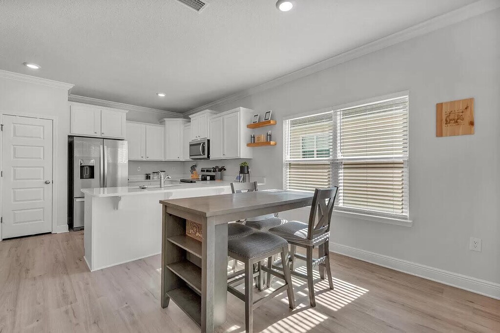 Well maintained, move-in ready, two-story home built in 2022, this home offers a spacious and inviting atmosphere. As you step into the home, you'll be greeted by a mud room to the right, perfect for keeping your entryway organized and clutter-free. Inside, you'll be captivated by the beautiful light wood luxury vinyl flooring that flows throughout the home. With plenty of natural light streaming in, you'll feel a sense of openness and brightness in every room. Recessed lighting adds a touch of elegance, while the crown molding in the living area and master bedroom adds a polished touch.The kitchen is a chef's dream, featuring all stainless-steel appliances, shaker cabinets, granite countertops, and a breakfast bar. The kitchen is open to the living room,