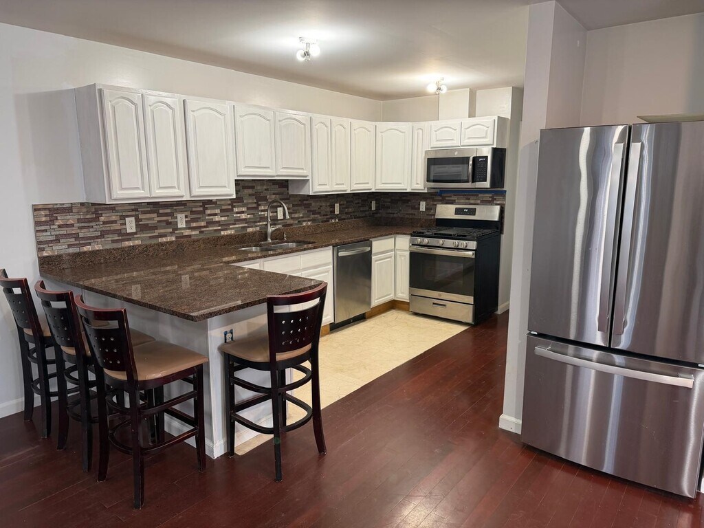 Beautiful 3-bedroom, 2-bath first-floor apartment in a two-family home offering generous living space throughout, featuring gorgeous cherry hardwood floors and an individual washer & dryer in unit. The open-concept layout includes a large living room and a separate dining room, along with a sleek kitchen equipped with granite countertops, a glass tile backsplash, and stainless steel appliances. Situated just 1.5 blocks from Central Ave and moments from NYC transportation, restaurants, local shops, parks, and everything Jersey City Heights has to offer. No pets and no parking at the property. Tenants are responsible for all utilities. One-year lease term with 1.5 months security deposit required. Immediate availability!