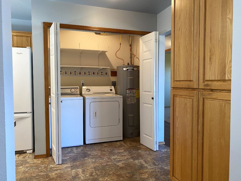 Beautifully landscaped and near the hospital, this well-kept, one-level 3-bedroom, 2-bathroom home on a quiet cul-de-sac has some ADA features. Living areas are a mix of hand-scraped hardwood and vinyl, with carpet in two bedrooms. With a washer and dryer kitchen-adjacent, your daily routine is convenient. The primary bedroom features an ADA ensuite bath, offering a private and comfortable space. Enjoy the rear deck, complete with a ramp, which is ideal for outdoor dining or simply enjoying the fresh air. Lawn maintenance is included, ensuring your outdoor space is always looking its best. The attached double garage provides ample space for your vehicles or additional storage. A large two-door shed provides added flexibility. This home is a perfect blend of comfort and convenience. One-year lease requirement. Security deposit in the amount of $3,450.00 plus pro-rated rent due at signing. Tenant pays all utilities, including electric, water/sewer and garbage. One small dog may be allowed with owner approval. Please upload photo of pet with your application. Tenant screening criteria includes: Credit score requirement of 650+, household income verification of at least 2.5 times the monthly rent, and criminal & eviction record review*. * ALL Tenants 18+ must apply at our website.