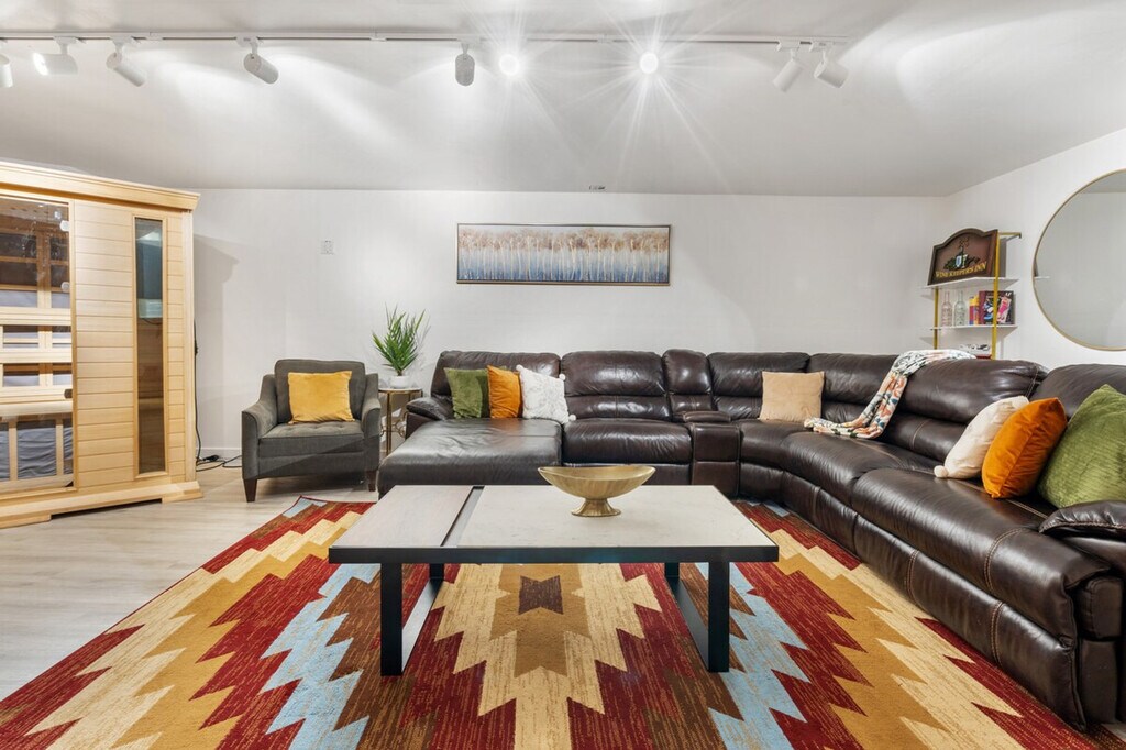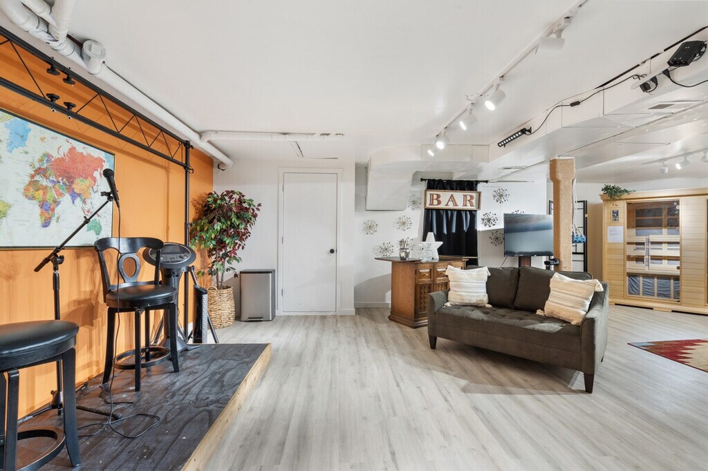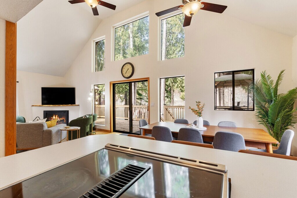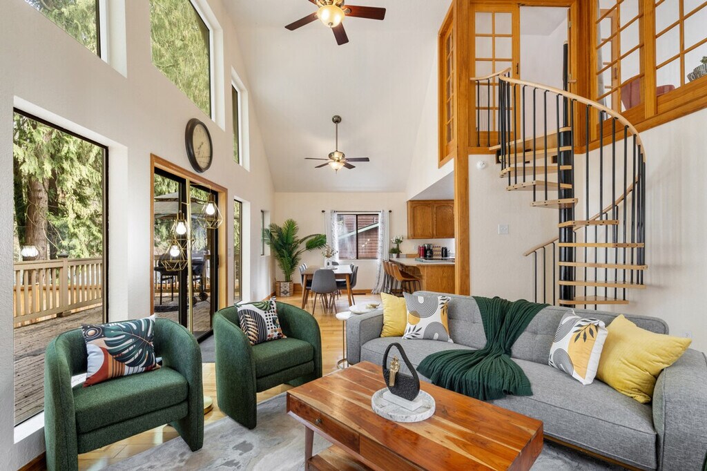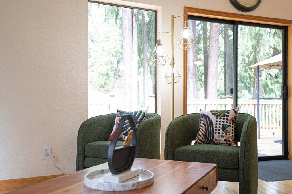 Feel at home in this picturesque riverfront home, nestled on the banks of the Stillaguamish River. This home offers 4 bedrooms and 2.5 bathrooms. With the river flowing right through the backyard, this home offers a perfect blend of nature and luxury. The entrance opens to an open kitchen concept, tall ceiling living room with sliding doors leading to the deck and hot tub overlooking the river, all illuminated by hanging lights. The kitchen is well-appointed with every essential, and there's space to dine and hang out at the breakfast bar and the window-side table. The basement with its separated entrance has a karaoke set-up, dancing pod area, bar, a movie theater room and a cedar sauna. A cedar hot tub overlooks the river. There is a huge front yard and driveway for all your parking needs. You can even park multiple RV's if you want. This home is 5 mins from the town of Granite Falls and 20 mins from the Mt. Baker-Snoqualmie National Forest. In the cascades you will find some of the best hiking and most beautiful natural features that Washington has to offer, including Gothic Basin, Big Four Ice Caves, Mt. Pilchuck Fire Lookout, Lake Twenty-Two, and Heather Lake. Other outdoor recreation activities in the area are endless as well, including hiking, whitewater kayaking, river tubing, backcountry skiing, and fishing. The sauna, movie theatre and one bedroom is on a different floor with a different entrance in the basement. The 3rd floor (one bedroom with 3 beds) is only accessible via the spiral staircase. Any use of fireworks anywhere near the house will result in a $1000 fine. Do NOT try parking under the deck, it's not tall enough. [SI]