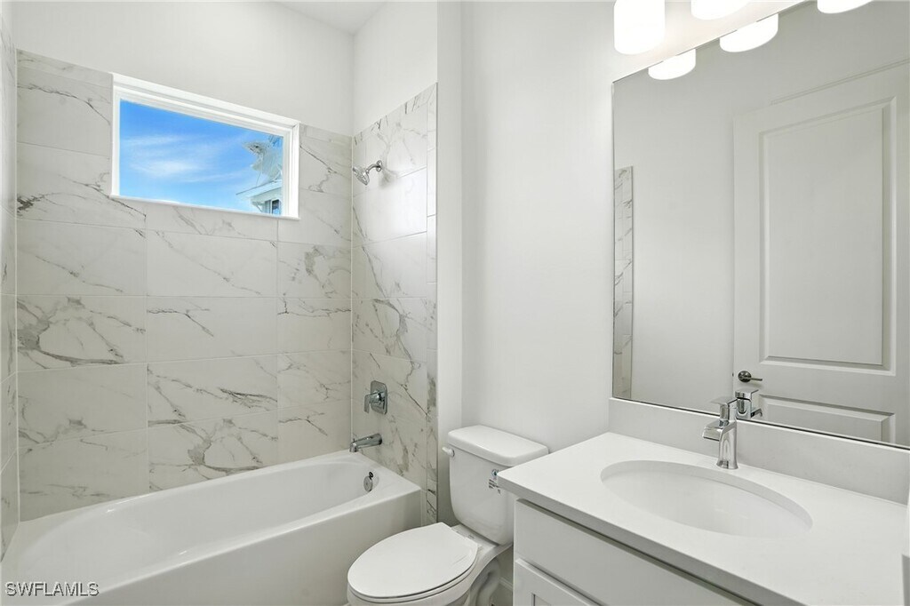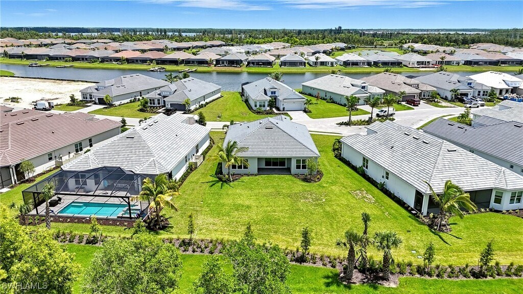 Discover your dream home at Esplanade Lake Club,a breathtaking waterfront community in Fort Myers,Florida. Nestled along the shores of Lake Como—a true boater’s paradise—this vibrant neighborhood offers the perfect blend of resort-style amenities and everyday relaxation. Stroll along the scenic lakeside trail,unwind on the floating pier,or spend the day kayaking,paddleboarding,or sailing from the community dock. Esplanade Lake Club is designed for those who love an active,social lifestyle. Enjoy a resort-style pool,casual dining at the Bahama Bar and Grill,and a spa room for massage therapy. Stay active with tennis,pickleball,and bocce ball courts,or connect with neighbors in the pet parks,event spaces,and game rooms. Live like you're on vacation—every day. This Letizia model home is bright,open,and thoughtfully appointed. The interior features tile flooring throughout,elegant white cabinetry,and sleek quartz countertops. A wall of sliding glass doors in the gathering room invites natural light and opens to a covered lanai—perfect for indoor-outdoor living. The kitchen boasts a central island and walk-in pantry,seamlessly connecting to the dining and living areas. The private primary suite includes a large walk-in shower with a built-in seat,dual vanities,and a spacious walk-in closet. Three additional bedrooms,two full baths,a study,laundry room,and convenient drop zone complete the home’s functional and flexible layout. Added structural upgrades include a dedicated study (in place of the flex space) and tray ceilings in the primary suite,dining room,and gathering room. Come experience the lifestyle you’ve been dreaming of—schedule your visit to Esplanade Lake Club today.