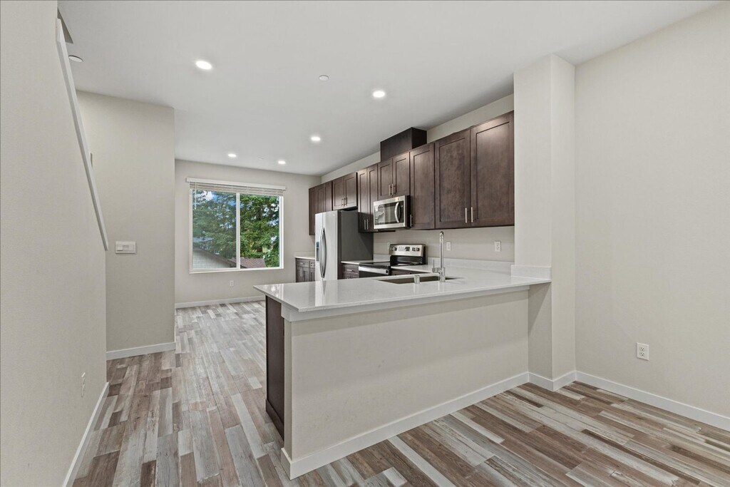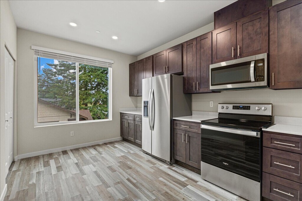 Available Now! Welcome to your new townhouse in Everett - Minutes from Boeing, Paine Field & 20 mins to the Everett Naval Base. This newly constructed 2-bedroom, 2.5-bathroom townhouse is a perfect blend of modern design and convenience. The kitchen is equipped with all appliances including a microwave, range/oven, dishwasher and refrigerator, complemented by stunning quartz countertops and a pantry. The 2nd level living area features LVP flooring, a balcony and ductless mini splits for optimal comfort. The top level has laundry, bathrooms and the bedrooms which are carpeted for added coziness. This townhouse also includes a washer/dryer & central A/C for your convenience. The oversized 2-car tandem garage fits 2 large vehicles comfortably plus a wider area for storage or hobbies. There's also free off-street guest parking available - no parking in front of the unit. Enjoy the outdoors in your fenced back yard with zero yard care maintenance, or relax on your 2nd level balcony while you grill up some dinner. The property is centrally located, close to public transportation, Kasch Park, shopping, grocery, schools, colleges, Providence Hospital, and downtown Everett. With modern finishings throughout, this townhouse is a perfect place to call home especially if you have a busy lifestyle!